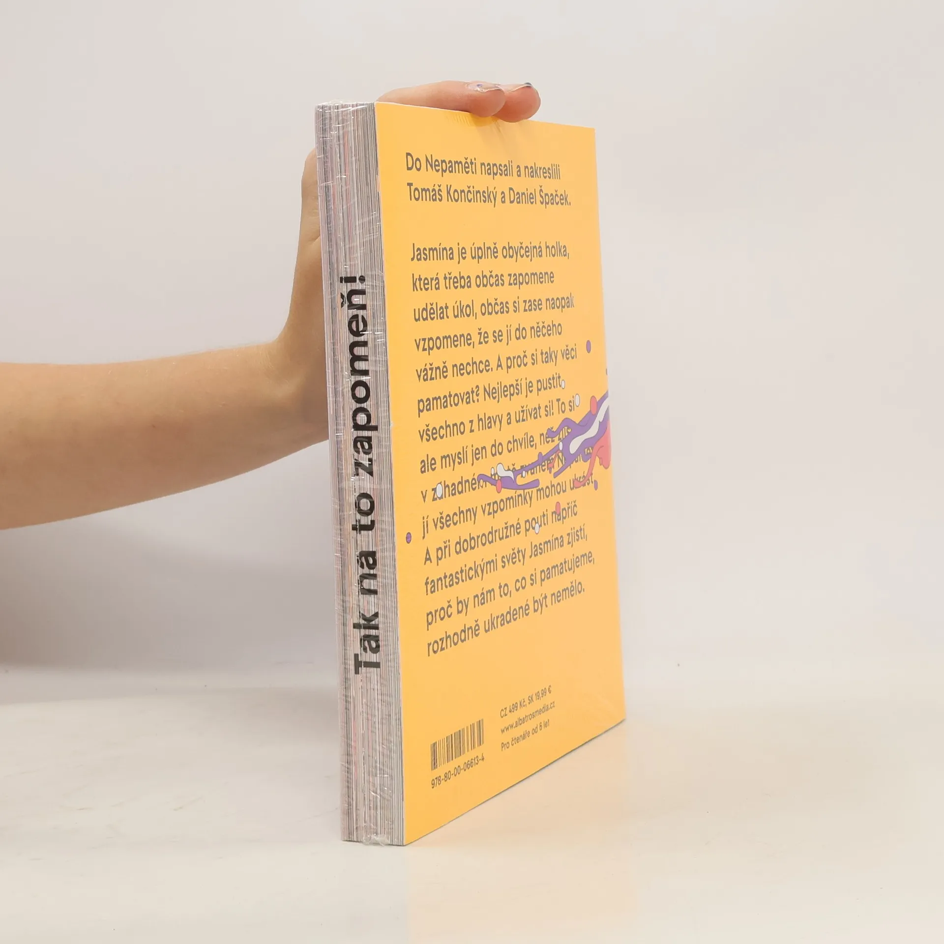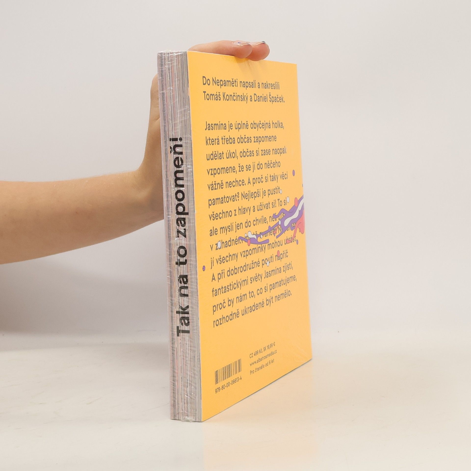 "Napínavý příběh z říše poztrácených vzpomínek od držitelů ceny Magnesia Litera." Jasmína je úplně obyčejná holka, která třeba občas zapomene udělat úkol, občas si zase naopak vzpomene, že se jí do něčeho vážně nechce. A proč si taky věci pamatovat? Nejlepší je pustit všechno z hlavy a užívat si! To si ale myslí jen do chvíle, než zjistí, že v záhadném místě zvaném Nepaměť jí všechny vzpomínky mohou ukrást. A při dobrodružné pouti napříč fantastickými světy Jasmína zjistí, proč by nám to, co si pamatujeme, rozhodně ukradené být nemělo.