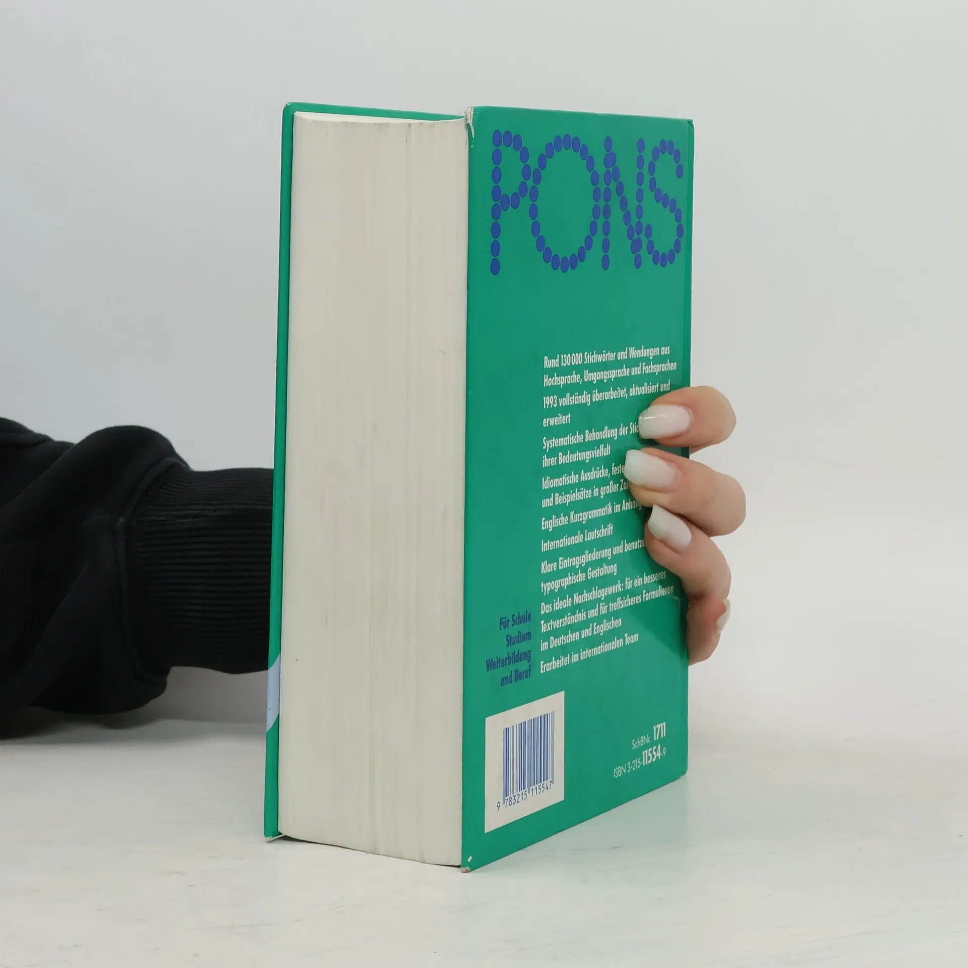 1470 pages Product 4.75 x 2.3 inches Shipping 3.5 pounds Printed in Germany, 1999 English-German Dictionary by Roland Breitsprecher, Peter Terrell, Veronika Schnorr, and Wendy V.A. Morris. Andrea Ender, Astrid Proctor, Stuttgart. Pons- Globalwörterb, Schulausg. Engli.- Deutsch Öbvethpt, Wien 1.Auflage, Nachdruck 1999 Cover Erwin Poell, Heidelberg. Computer Type Set by Morton Word Proccesing Ltd., Scarborough, England. 3125171326 3215115549
