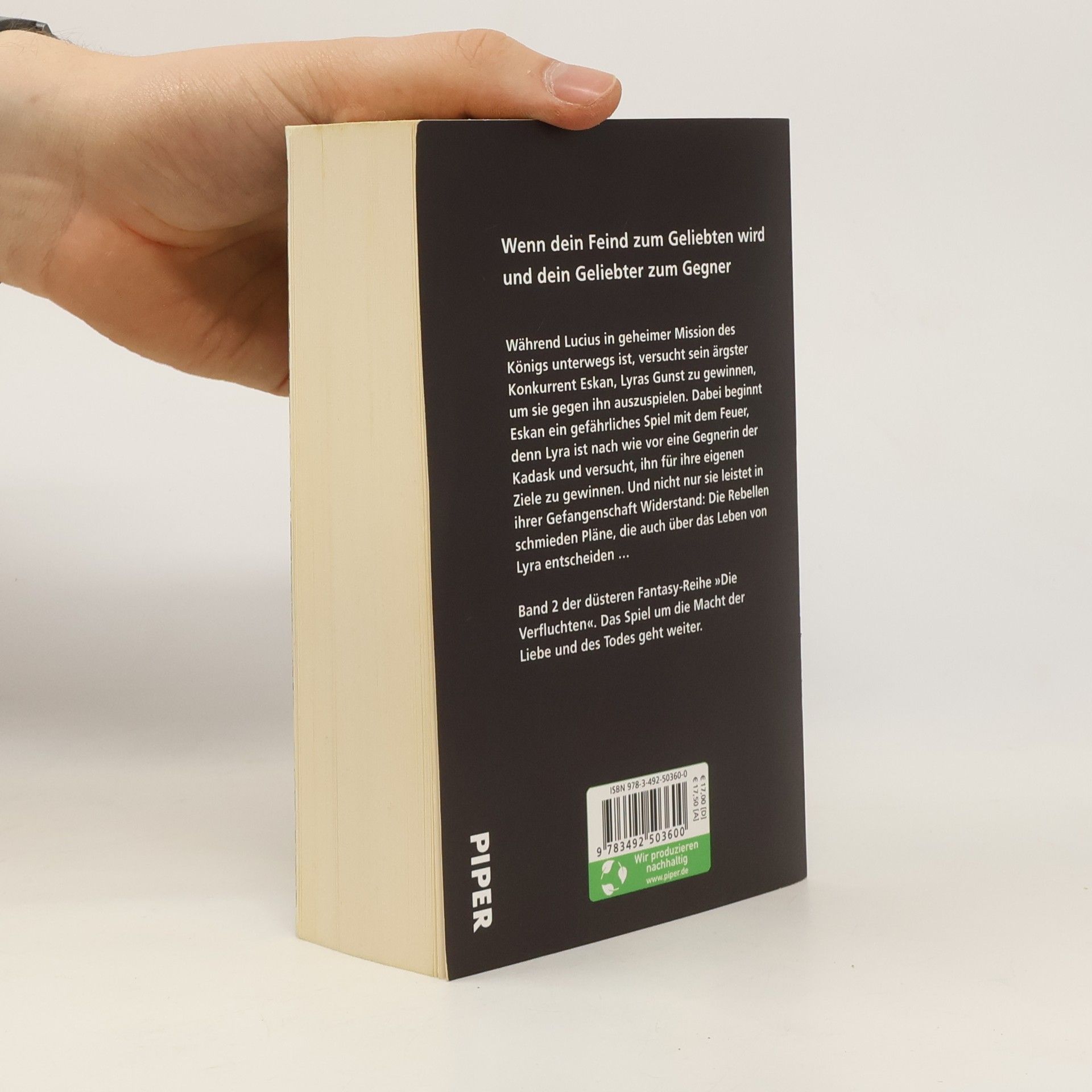 Wenn dein Feind zum Geliebten wird und dein Geliebter zum Gegner - ein düsterer Fantasyroman um die Macht der Liebe und des Todes. Für alle LeserInnen von Leigh Bardugo und Naomi Novik »Wie eine Königin schreitet sie den Korridor entlang. Warmes Sonnenlicht fällt auf ihre bleiche Haut, der Saum ihres pechschwarzen Kleides schleift über den Boden. Ihre dunklen verwegenen Augen liegen erwartungsvoll auf mir. Ich dachte, ich sei ihr Verderben, doch ich habe mich geirrt. Sie würde meines sein.« Während Lucius in geheimer Mission des Königs unterwegs ist, versucht sein ärgster Konkurrent Eskan, Lyras Gunst zu gewinnen, um sie gegen ihn auszuspielen. Dabei beginnt Eskan ein gefährliches Spiel mit dem Feuer, denn Lyra ist nach wie vor eine Gegnerin der Kadask und versucht, ihn für ihre eigenen Ziele zu gewinnen. Und nicht nur sie leistet in ihrer Gefangenschaft Widerstand: Die Rebellen schmieden Pläne, die auch über das Leben von Lyra entscheiden. Band 2 der düsteren Fantasy-Reihe »Die Verfluchten«. Das Spiel um die Macht der Liebe und des Todes geht weiter.