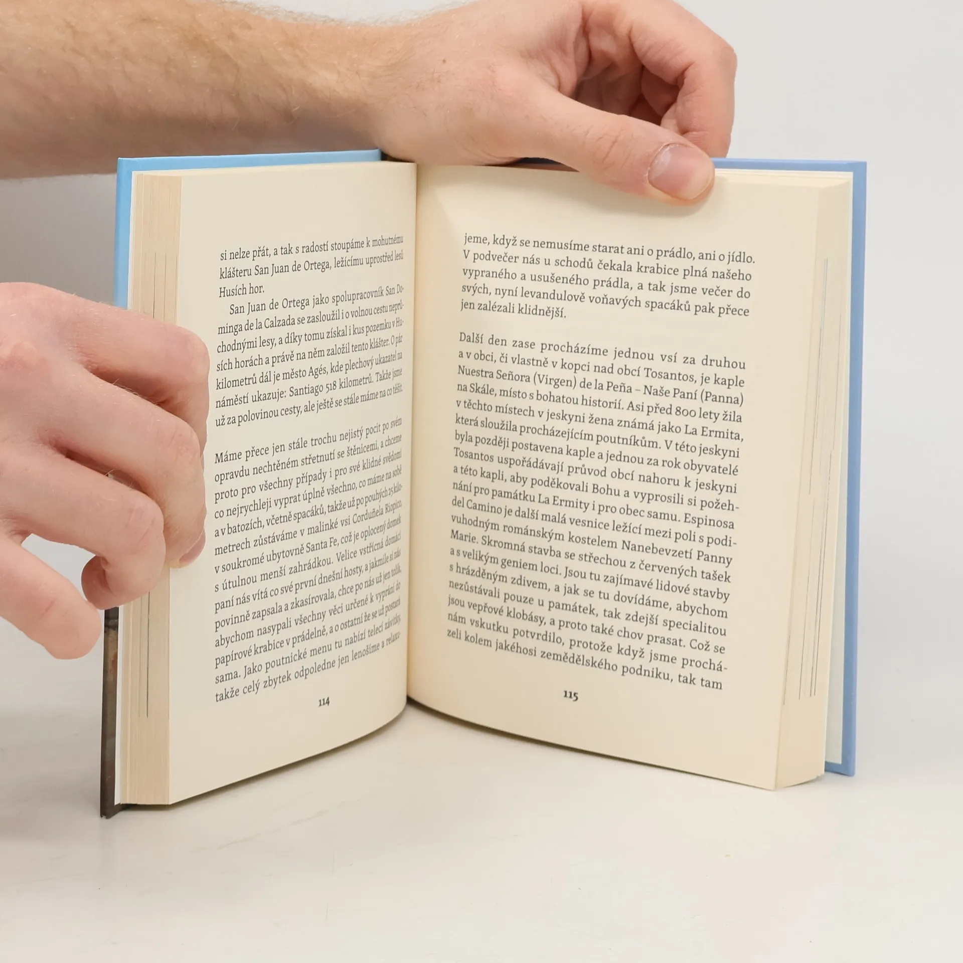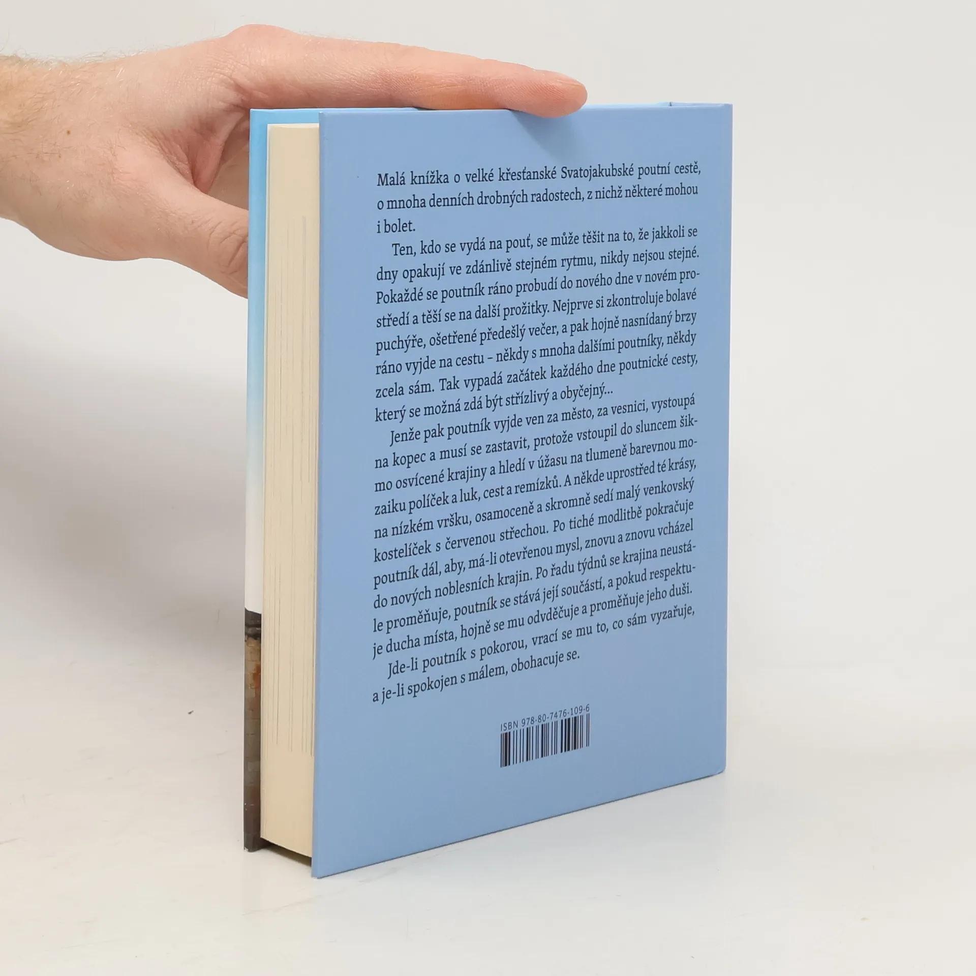 Malá knížka o velké křesťanské Svatojakubské poutní cestě, o mnoha denních drobných radostech, z nichž některé mohou i bolet. Ten, kdo se vydá na pouť, se může těšit na to, že jakkoli se dny opakují ve zdánlivě stejném rytmu, nikdy nejsou stejné. Pokaždé se poutník ráno probudí do nového dne v novém prostředí a těší se na další prožitky. Nejprve si zkontroluje bolavé puchýře, ošetřené předešlý večer, a pak hojně nasnídaný brzy ráno vyjde na cestu – někdy s mnoha dalšími poutníky, někdy zcela sám. Tak vypadá začátek každého dne poutnické cesty, který se možná zdá být střízlivý a obyčejný… Jenže pak poutník vyjde ven za město, za vesnici, vystoupá na kopec a musí se zastavit, protože vstoupil do sluncem šikmo osvícené krajiny a hledí v úžasu na tlumeně barevnou mozaiku políček a luk, cest a remízků. A někde uprostřed té krásy, na nízkém vršku, osamoceně a skromně sedí malý venkovský kostelíček s červenou střechou. Po tiché modlitbě pokračuje poutník dál, aby, má-li otevřenou mysl, znovu a znovu vcházel do nových noblesních krajin. Po řadu týdnů se krajina neustále proměňuje, poutník se stává její součástí, a pokud respektuje ducha místa, hojně se mu odvděčuje a proměňuje jeho duši. Jde-li poutník s pokorou, vrací se mu to, co sám vyzařuje, a je-li spokojen s málem, obohacuje se.