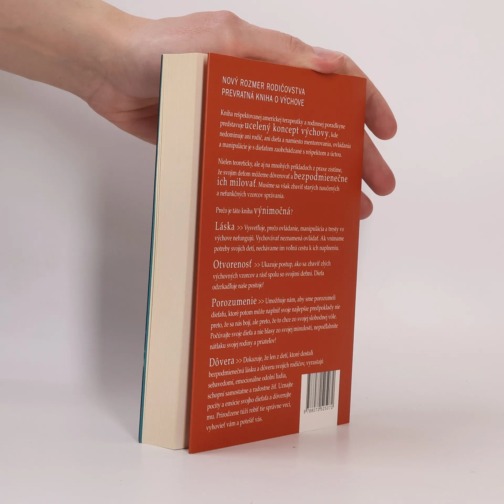 PRÍRUČKA, KTORÁ VÁM POMÔŽE VYCHOVAŤ ZODPOVEDNÉ DIEŤA AJ BEZ TRESTOV A HROZIEB Každý rodič by sa s radosťou vzdal hrozieb a trestov, len keby vedel, ako bez týchto bolestivých opatrení zaistiť, že jeho deti budú prospievať a správať sa zodpovedne. Kniha, ktorú držíte v rukách, je odpoveďou na toto univerzálne želanie. Nehovorí o tom, ako deti nenápadne a mierne ovládať. Ukazuje cestu ako žiť a porozumieť dieťaťu, aby mohlo naplniť svoje najlepšie predpoklady nie preto, že sa vás bojí, ale preto, že to chce zo svojej vlastnej slobodnej vôle. NOVÝ ROZMER RODIČOVSTVA PREVRATNÁ KNIHA O VÝCHOVE Kniha rešpektovanej americkej terapeutky a rodinnej poradkyne predstavuje ucelený koncept výchovy, kde nedominuje ani rodič, ani dieťa a namiesto mentorovania, ovládania a manipulácie je s dieťaťom zaobchádzané s rešpektom a úctou. Nielen teoreticky, ale aj na mnohých príkladoch z praxe zistíme, že svojim deťom môžeme dôverovať a bezpodmienečne ich milovať. Iba sa musíme zbaviť starých naučených a nefunkčných vzorcov správania sa. Prečo je táto kniha výnimočná? Vysvetľuje, prečo ovládanie, manipulácia a tresty vo výchove nefungujú. Vychovávať neznamená ovládať. Ak vnímame potreby svojich detí, nechávame im voľnú cestu k ich naplneniu.