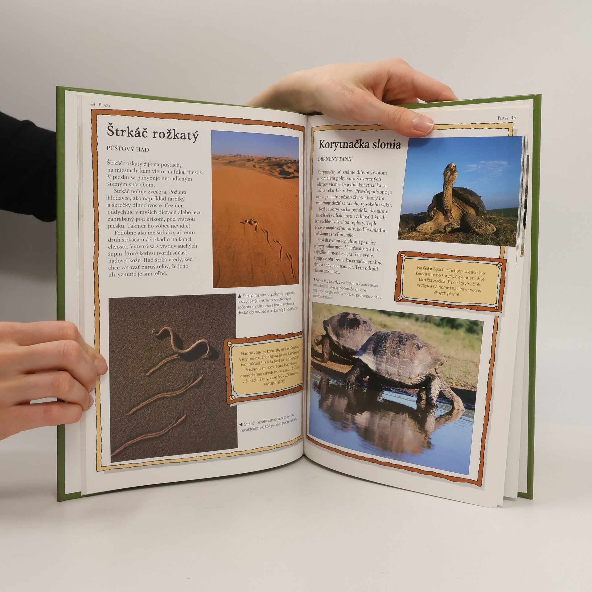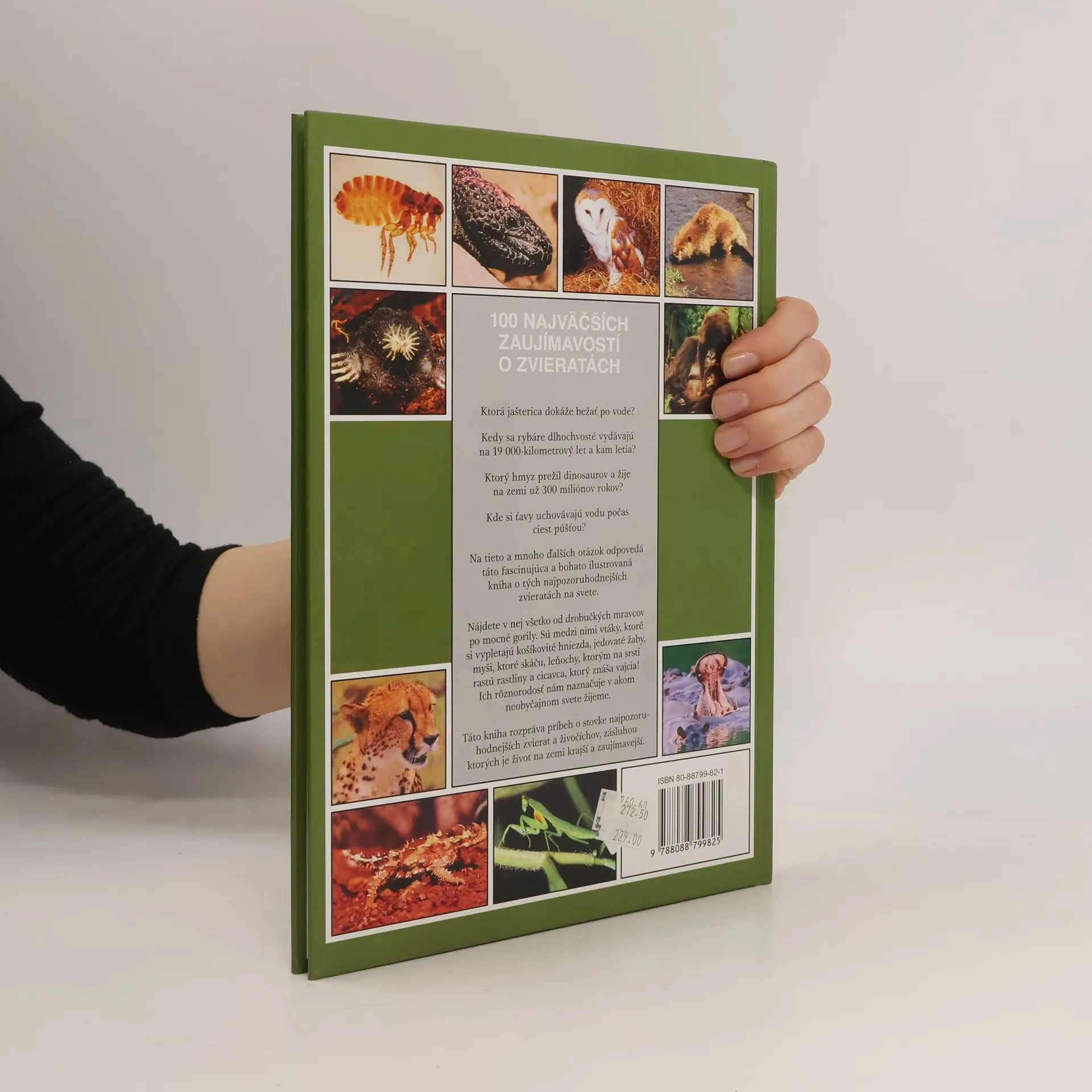 Bohato ilustrovaná kniha o tých najpozoruhodnejších zvieratách na svete.Obsah: Hmyz-Mravec, Šváb, Skarabeus, Blcha, Svetluška, Koník, Modlivka, Roháč, Pakobylka, Termity, Krajčírske mravce, Včela, Babôčka smradľavá, Lienka, Okáň vŕbový, Priadka morušová, Osa murárka. Iné bezstavovce-Dážďovka, Šťúr, Slimák, Pavúk, Vtáčkar, Krab fidlikant. Obojživelníky-Šípová žaba, Nosačka vrecková, Lietavka. Plazy-Bazilišok, Veľhad kráľovský, Chameleón, Kobra, Krokodíl, Jašter golierikatý, Gekon, Kôrnatec gila, Varan komodský, Moloch, Štrkáč rožkatý, Korytnačka slonia. Vtáky-Rajka, Šiatorník, Žeriav, Kukučka, Darwinova pinka, Fregata, Zoborožec, Kolibrík, Kiwi, Tabon holubí, Drozdec, Pštros, Plamienka driemavá, Ďateľ, Pelikán, Tučniak, Sokol sťahovaný, Dážďovník, Rybár dlhochvostý, Pletiarka. Ostatné cicavce-Mravčiar, Pásavec, Netopier, Bobor, Hroch, Letucha, Surikata, Myšovka skákavá, Krt, Dikobraz, Skunk. Mäsožravce-Medveď hnedý, Medveď biely, Gepard, Pes hyenovitý, Fenek, Mungo, Hranostaj, Tiger. Bylinožravce-Bizón, Ťava, Slon, Žirafa, Kozorožec, Los, Pižmoň, Panda veľká, Nosorožec, Leňoch, Antilopa skákavá, Lama vikuňa, Byvolec, Zebra. Vačkovce-Vtákopysk, Kengura, Vačica opossum. Primáty-Ksukol, Gibon, Gorila, Makak japonský, Kahau nosatý, Okáľ skackavý.