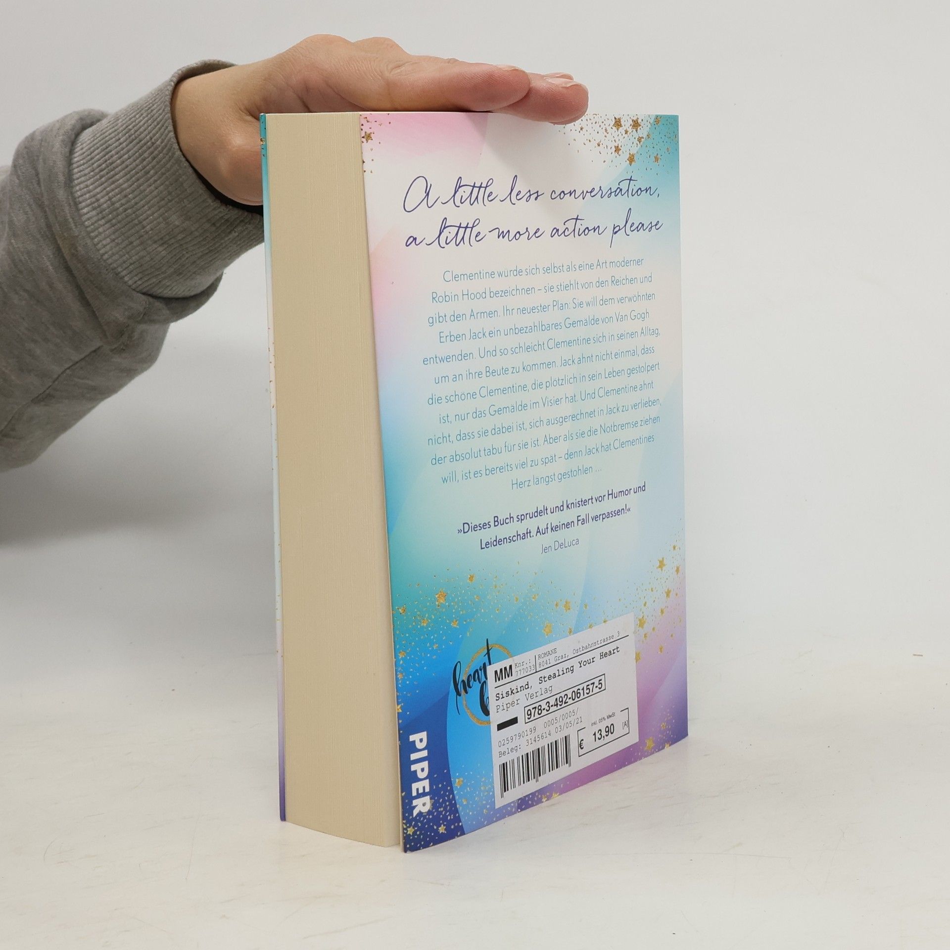 Sie ist hinter seinem Gemälde her. Er ist hinter ihr her … Clementine stiehlt von den Reichen und gibt den Armen. Ihr neuester Plan: Sie will dem verwöhnten Erben Jack einen unbezahlbaren van Gogh entwenden. Und so schleicht Clementine sich in Jacks Leben ein, um an ihre Beute zu kommen. Jack weiß nicht einmal, dass seine Familie einen echten van Gogh besitzt, geschweige denn, dass die schöne Clementine, die plötzlich in sein Leben gestolpert ist, genau diesen im Visier hat. Und Clementine weiß nicht, warum sie sich ausgerechnet in den charmanten Jack verlieben muss, wenn doch genau das über kurz oder lang zu jeder Menge Problemen führen wird. Aber als sie die Notbremse ziehen will, ist es bereits viel zu spät – denn Jack hat Clementines Herz längst gestohlen … Eine weibliche Robin Hood-Heldin wird in dieser romantischen Komödie zum Dahinschmelzen von der Liebe abgelenkt. »Dieses Buch sprudelt und knistert vor Humor und Leidenschaft. Auf keinen Fall verpassen!« Jen DeLuca, Autorin von »A History of us« Wenn die erprobte kanadische Romance-Autorin Kelly Siskind nicht gerade mit ihrem Mann wandern geht, Bücher verschlingt oder ihren Käseladen im Norden Ontarios betreibt, hält sie eine der vielen Ideen fest, die in ihrem Kopf herumschwirren.