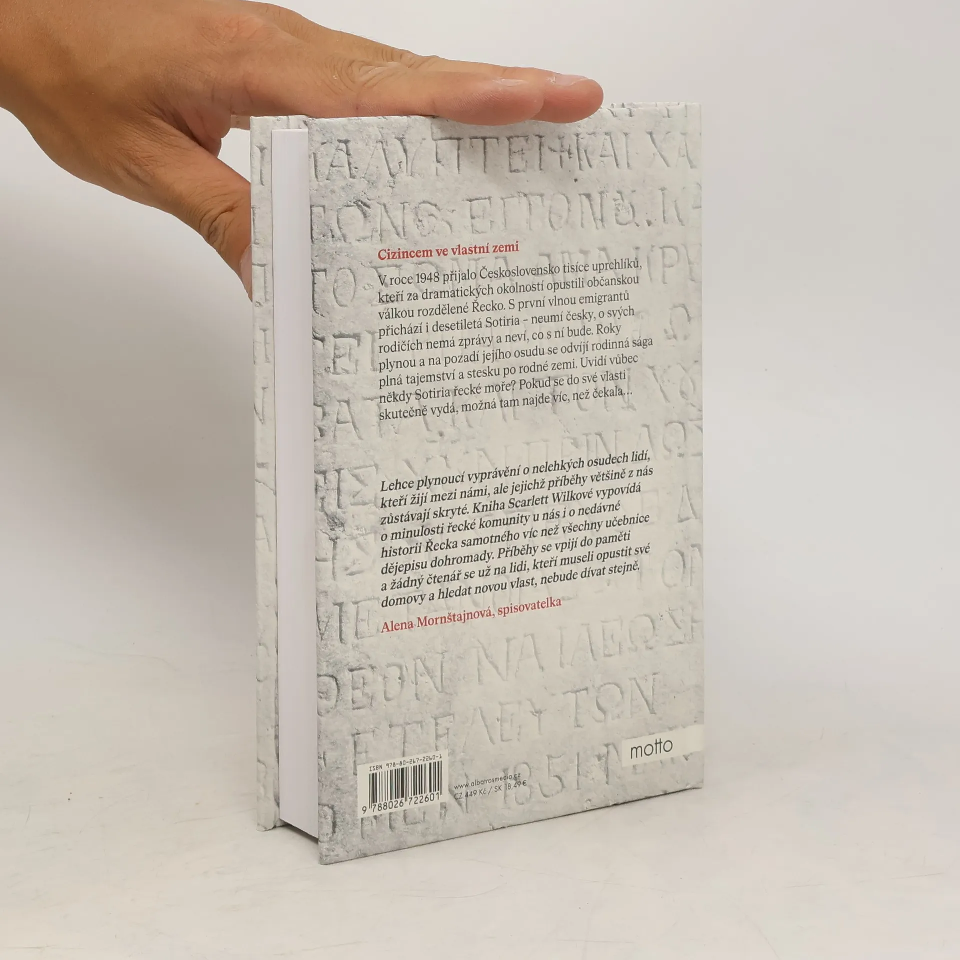Cizincem ve vlastní zemi. Románový debut známé novinářky. V roce 1948 přijalo Československo tisíce uprchlíků, kteří za dramatických okolností opustili občanskou válkou rozdělené Řecko. S první vlnou emigrantů přichází i desetiletá Sotiria – neumí česky, o svých rodičích nemá zprávy a neví, co s ní bude. Roky plynou a na pozadí jejího osudu se odvíjí rodinná sága plná tajemství a stesku po rodné zemi. Uvidí někdy Sotiria řecké moře? Pokud se do své vlasti skutečně vydá, možná tam najde víc, než čekala… Dvě dcery řeckých uprchlíků, dva životy mezi dvěma zeměmi. Jaké to je, když se v deseti letech dítě ocitne samo v daleké cizí zemi, neumí jazyk, neví, kam se ztratili jeho rodiče, a vůbec nechápe, co se s ním stalo? Toto prožívaly v roce 1949 tisíce řeckých dětí, kterým po občanské válce v Řecku poskytlo Československo azyl. Mezi nimi byly i dvě osamocené holčičky Sotiria a Koula. Na pozadí jejích osudů se odvíjí rodinná sága plná tajemství a stesku po rodné zemi. Uvidí někdy Sotiria a Koula řecké moře? A kde jsou vlastně doma?