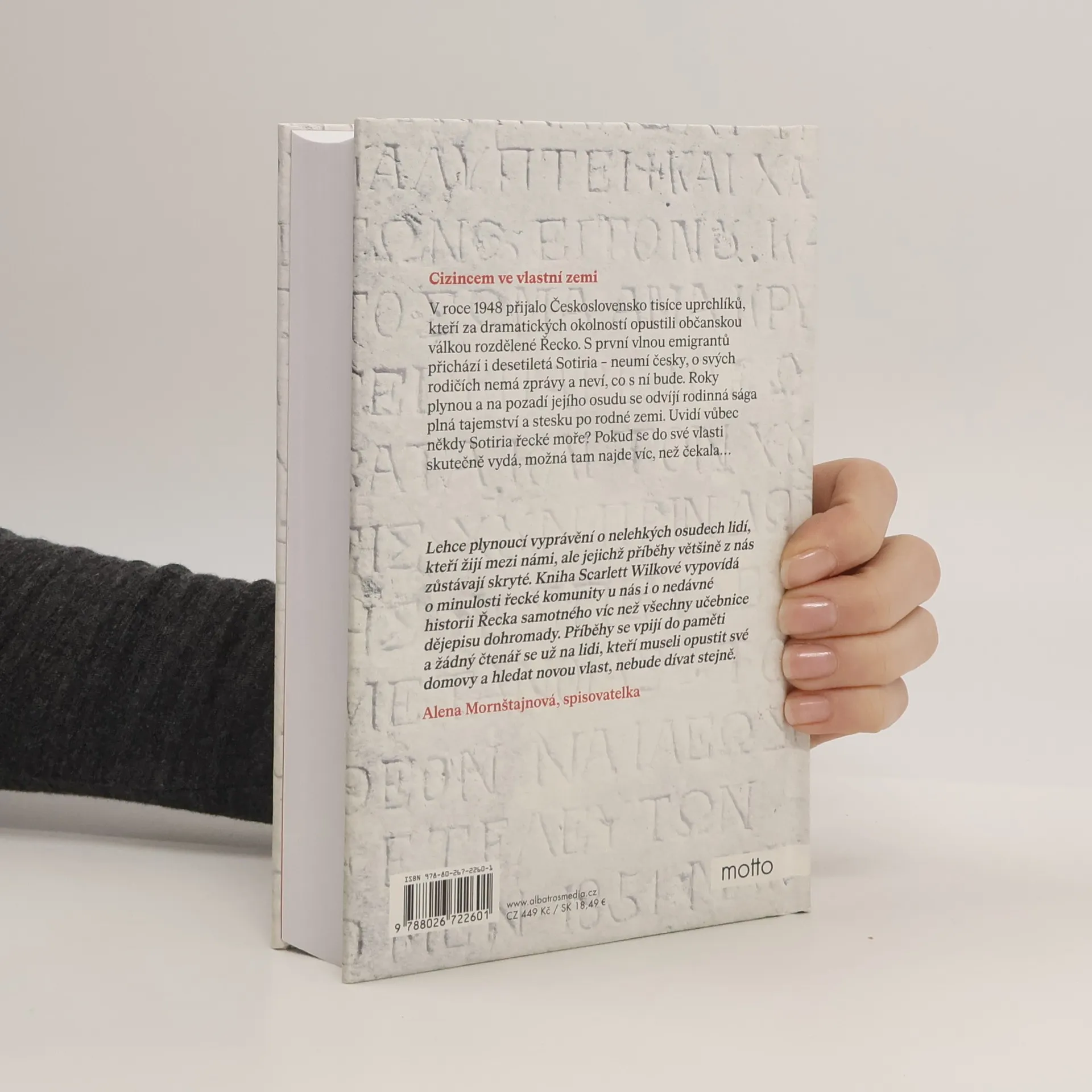Cizincem ve vlastní zemi. Románový debut známé novinářky. V roce 1948 přijalo Československo tisíce uprchlíků, kteří za dramatických okolností opustili občanskou válkou rozdělené Řecko. S první vlnou emigrantů přichází i desetiletá Sotiria – neumí česky, o svých rodičích nemá zprávy a neví, co s ní bude. Roky plynou a na pozadí jejího osudu se odvíjí rodinná sága plná tajemství a stesku po rodné zemi. Uvidí někdy Sotiria řecké moře? Pokud se do své vlasti skutečně vydá, možná tam najde víc, než čekala… Dvě dcery řeckých uprchlíků, dva životy mezi dvěma zeměmi. Jaké to je, když se v deseti letech dítě ocitne samo v daleké cizí zemi, neumí jazyk, neví, kam se ztratili jeho rodiče, a vůbec nechápe, co se s ním stalo? Toto prožívaly v roce 1949 tisíce řeckých dětí, kterým po občanské válce v Řecku poskytlo Československo azyl. Mezi nimi byly i dvě osamocené holčičky Sotiria a Koula. Na pozadí jejích osudů se odvíjí rodinná sága plná tajemství a stesku po rodné zemi. Uvidí někdy Sotiria a Koula řecké moře? A kde jsou vlastně doma?