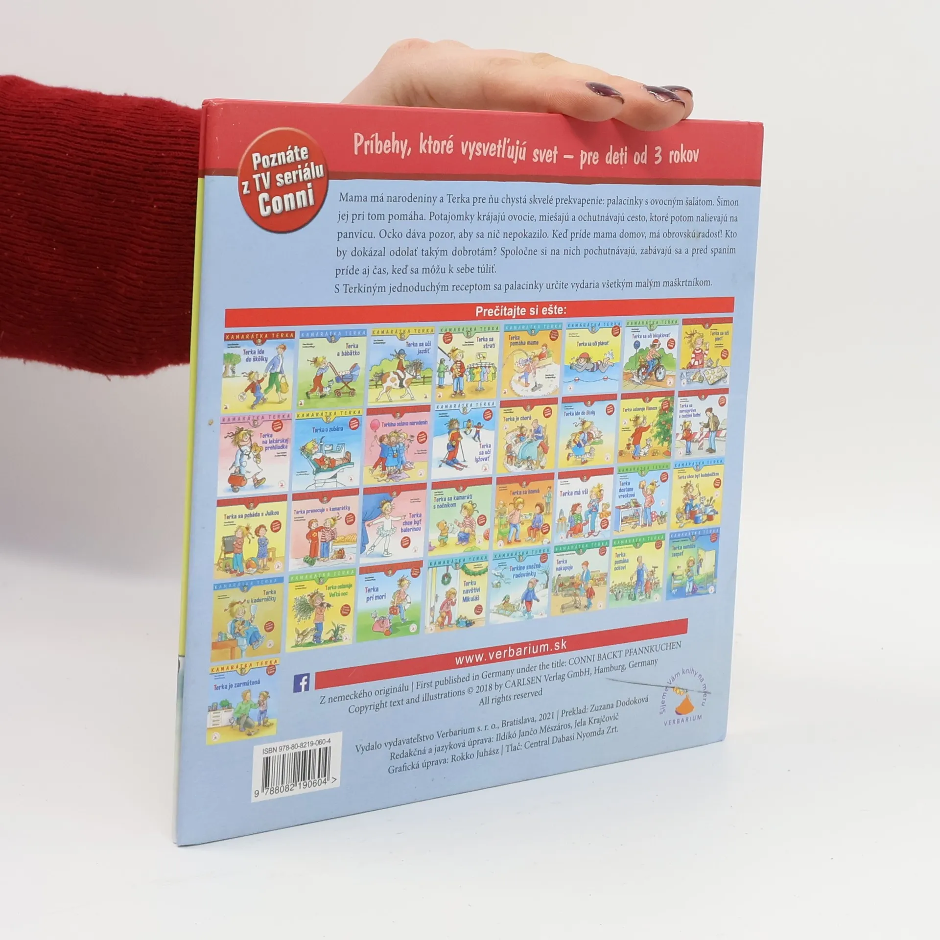 Mama má narodeniny a Terka pre ňu chystá skvelé prekvapenie: palacinky s ovocným šalátom. Šimon jej pri tom pomáha. Potajomky krájajú ovocie, miešajú a ochutnávajú cesto, ktoré potom nalievajú na panvicu. Ocko dáva pozor, aby sa nič nepokazilo. Keď príde mama domov, má obrovskú radosť. Kto by dokázal odolať takým dobrotám? Spoločne si na nich pochutnávajú, zabávajú sa a pred spaním príde čas, keď sa môžu k sebe túliť. S Terkiným jednoduchým receptom sa palacinky určite vydaria všetkým malým maškrtníkom.