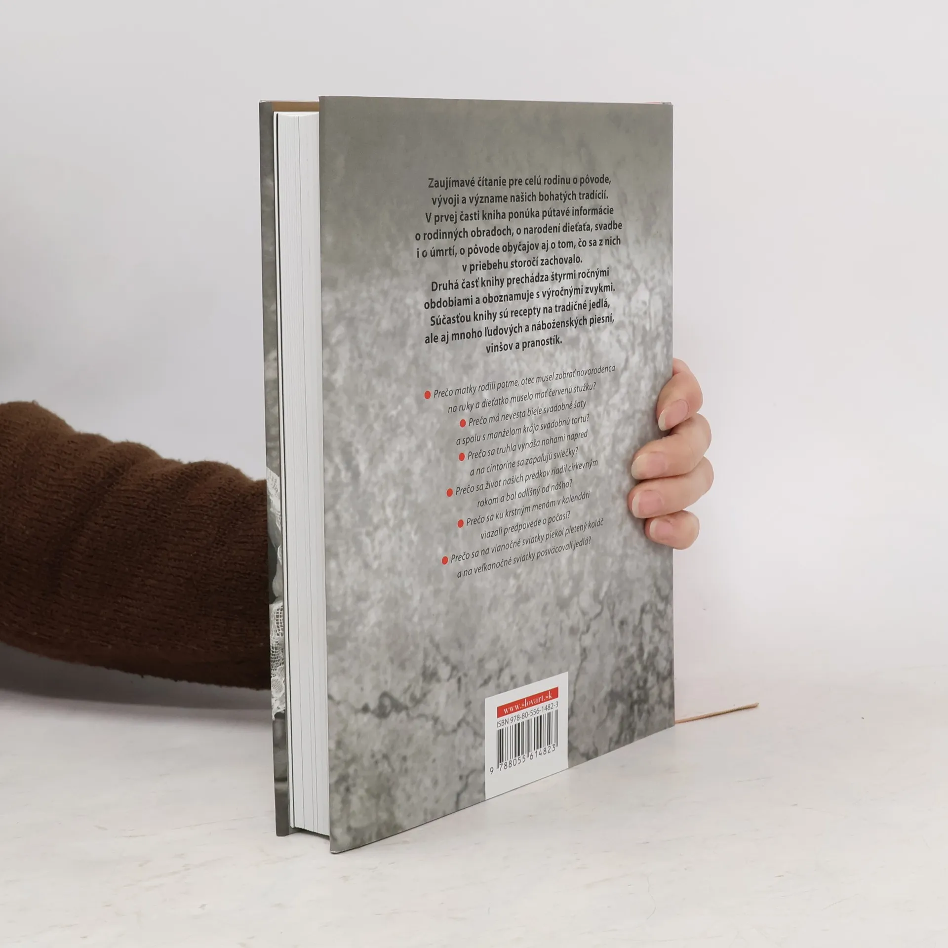 Kniha Tradície na Slovensku je zaujímavým čítaním pre celú rodinu o pôvode, vývoji a význame našich bohatých tradícií. V prvej časti ponúka pútavé informácie o rodinnom zvykosloví, o narodení dieťaťa, svadbe i o úmrtí, o pôvode zvykov a obradov aj o tom, čo sa z nich v priebehu storočí zachovalo. Druhá časť knihy prechádza štyrmi ročnými obdobiami a oboznamuje s výročnými zvykmi a obradmi. Súčasťou knihy je receptár s tradičnými jedlami, ale aj mnoho piesní, riekaniek a pranostík.