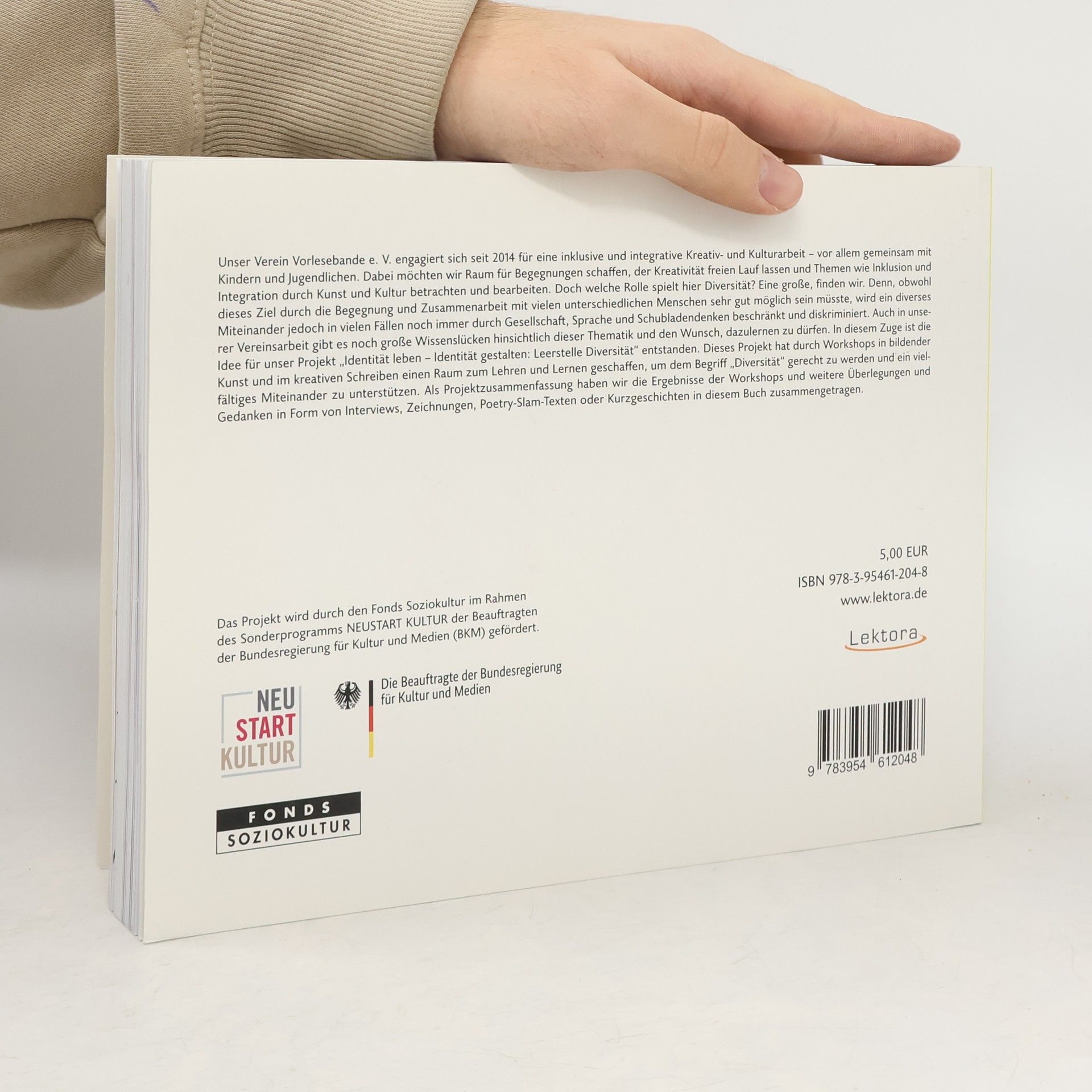 Unser Verein Vorlesebande e. V. engagiert sich seit 2014 für eine inklusive und integrative Kreativ- und Kulturarbeit – vor allem gemeinsam mit Kindern und Jugendlichen. Dabei möchten wir Raum für Begegnungen schaffen, der Kreativität freien Lauf lassen und Themen wie Inklusion und Integration durch Kunst und Kultur betrachten und bearbeiten. Doch welche Rolle spielt hier Diversität? Eine große, finden wir. Denn, obwohl dieses Ziel durch die Begegnung und Zusammenarbeit mit vielen unterschiedlichen Menschen sehr gut möglich sein müsste, wird ein diverses Miteinander jedoch in vielen Fällen noch immer durch Gesellschaft, Sprache und Schubladendenken beschränkt und diskriminiert. Auch in unserer Vereinsarbeit gibt es noch große Wissenslücken hinsichtlich dieser Thematik und den Wunsch, dazulernen zu dürfen. In diesem Zuge ist die Idee für unser Projekt „Identität leben – Identität gestalten: Leerstelle Diversität“ entstanden. Dieses Projekt hat durch Workshops in bildender Kunst und im kreativen Schreiben einen Raum zum Lehren und Lernen geschaffen, um dem Begriff „Diversität“ gerecht zu werden und ein vielfältiges Miteinander zu unterstützen. Als Projektzusammenfassung haben wir die Ergebnisse der Workshops und weitere Überlegungen und Gedanken in Form von Interviews, Zeichnungen, Poetry-Slam-Texten oder Kurzgeschichten in diesem Buch zusammengetragen.
