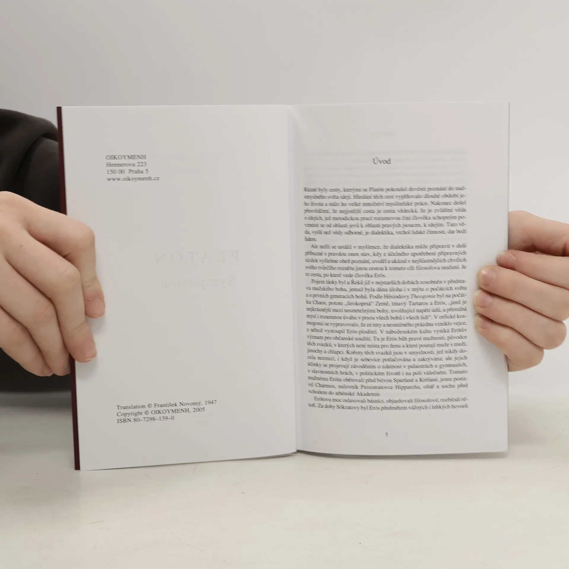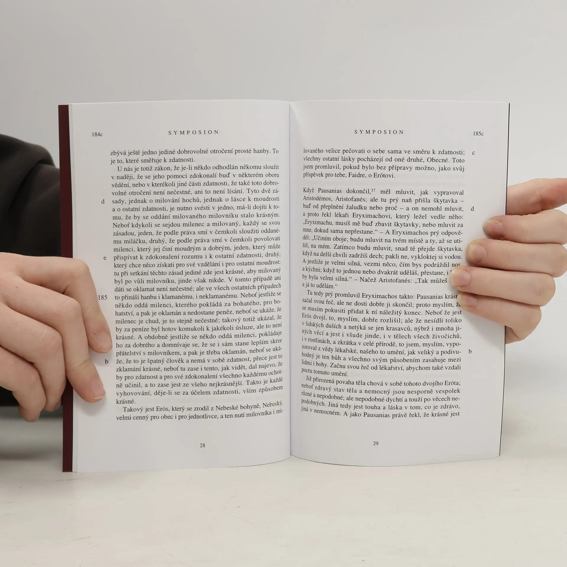 Pojem lásky byl u Řeků zosobněn v muži-bohu, který měl klíčovou roli v mýtech o počátcích světa. Hésiodova Theogonie popisuje Eróta jako nejkrásnějšího z nesmrtelných bohů, který ovlivňuje mysl všech bohů a lidí. V orfické kosmogonii se Erós zjevil z vejce z temnoty a prázdnoty. Jeho význam v náboženském kultu se projevuje v občanském soužití, kde je bůh pravé mužnosti, spojovatel mužských svazků. Tyto svazky, založené na smyslnosti, ovlivňují politiku, válku a sport. Sparťané a Kréťané mu obětovali před bitvami. Platónův dialog Symposion, konaný po hostině u Agathóna, se zaměřuje na oslavu Eróta prostřednictvím různých řečníků, včetně Sókrata, jehož řeč přináší nový pohled na lásku jako touhu po dokonalosti. Sókratés, inspirován Diotimou, ukazuje, že láska vede k nejvyššímu poznání a kráse, která přesahuje smyslové vjemy. Erós spojuje protiklady, jako smyslnost a nadsmyslnost. Dialog končí příchodem Alkibiadésa, který vyzdvihuje Sókrata jako vítěze nad smyslností, čímž doplňuje předchozí úvahy o Erótovi. Sókratova řeč a Alkibiadovo vyznání ukazují, jak láska a touha po poznání formují lidskou existenci.