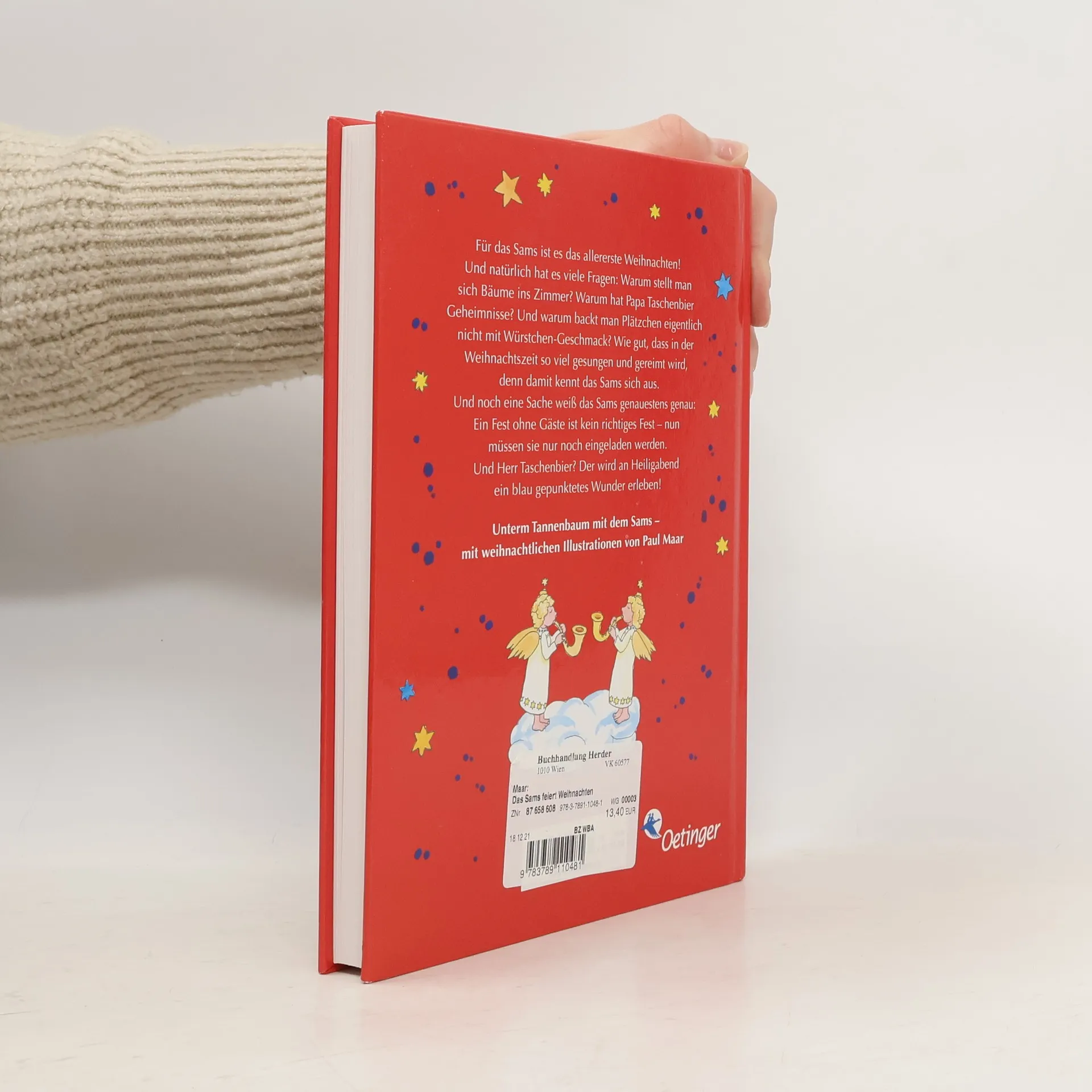 Weihnachten werden Wünsche wahr! So etwas hat das Sams noch nicht erlebt! Was sind das nur für Flügelwesen, die angeblich im Himmel wohnen? Wieso hat Papa Taschenbier auf einmal so viele Geheimnisse? Und warum stellt man sich Bäume ins Wohnzimmer? Als das Sams zu seinem Weihnachtsfestdebüt noch ein paar Kollegen aus der Welt der Samse einlädt, geht so mancher gewünschter, allerdings auch mancher ungewünschter Wunsch in Erfüllung. Aber am Ende bescheren die vielen Samse Herrn Taschenbier einen stürmischen, wirklich absolut unvergesslichen Weihnachtsabend.Turbulent, charmant, mit allem, was das Herz das perfekte Weihnachtsgeschenk für alle Fans vom Sams.