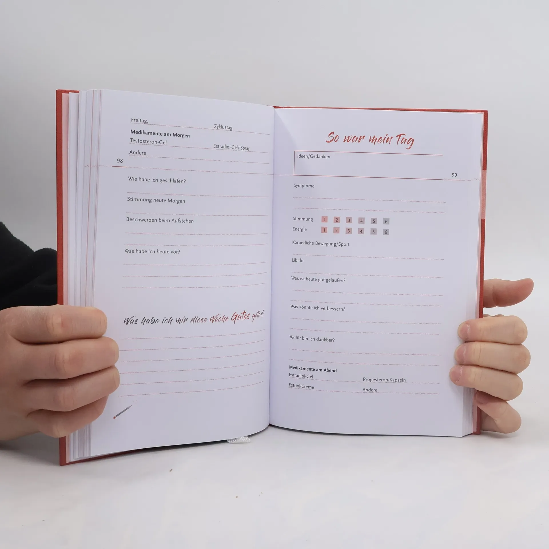 Die Wechseljahre sind eine Zeit des Wandels, eine Zeit, in der es sich lohnt, in sich reinzuhorchen und Veränderungen festzuhalten: Wann kommt mein Zyklus? Wie schlafe ich? Wie fit fühle ich mich? Wie ist meine Stimmung? Wie mein Gewicht? Mit diesem Gesundheitsjournal bietet Sheila de Liz ihren Leserinnen zum einen die Möglichkeit, ihre Symptome und Hormonwerte festzuhalten und so eine gute Gesprächsgrundlage für den nächsten Arzttermin zu schaffen. Zum anderen bietet es aber auch viel Raum, eigene Gedanken und Gefühle festzuhalten. So findet die Leserin neben Checklisten, Tabellen und Infokästen jede Menge Inspiration und Ermutigung von Deutschlands beliebtester Frauenärztin.