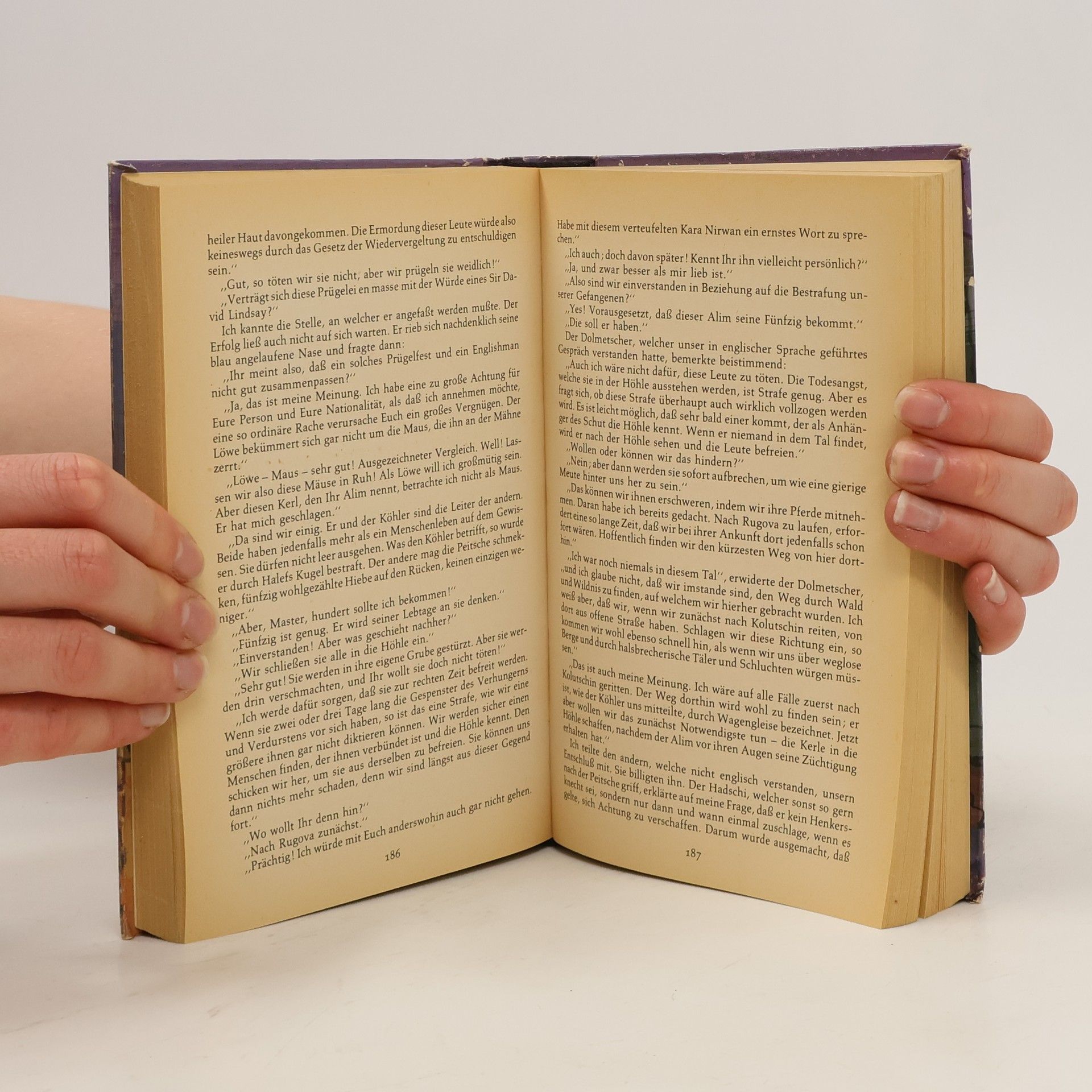Nach Abenteuern in der Teufelsschlucht und bei der Juwelenhöhle treffen Kara Ben Nemsi und seine Begleiter auf das Oberhaupt der Verbrecher, den Schut. Manche gefährliche Situation wird heraufbeschworen, ehe die Jagd, die in der tunesischen Wüste begann, in Albanien zu Ende geht. Der Schut gehört zu einer sechsteiligen Reihe. Weitere Bände: Durch die Wüste (Band 1), Durchs wilde Kurdistan (Band 2), Von Bagdad nach Stambul (Band 3), In den Schluchten des Balkan (Band 4), Durch das Land der Skipetaren (Band 5).