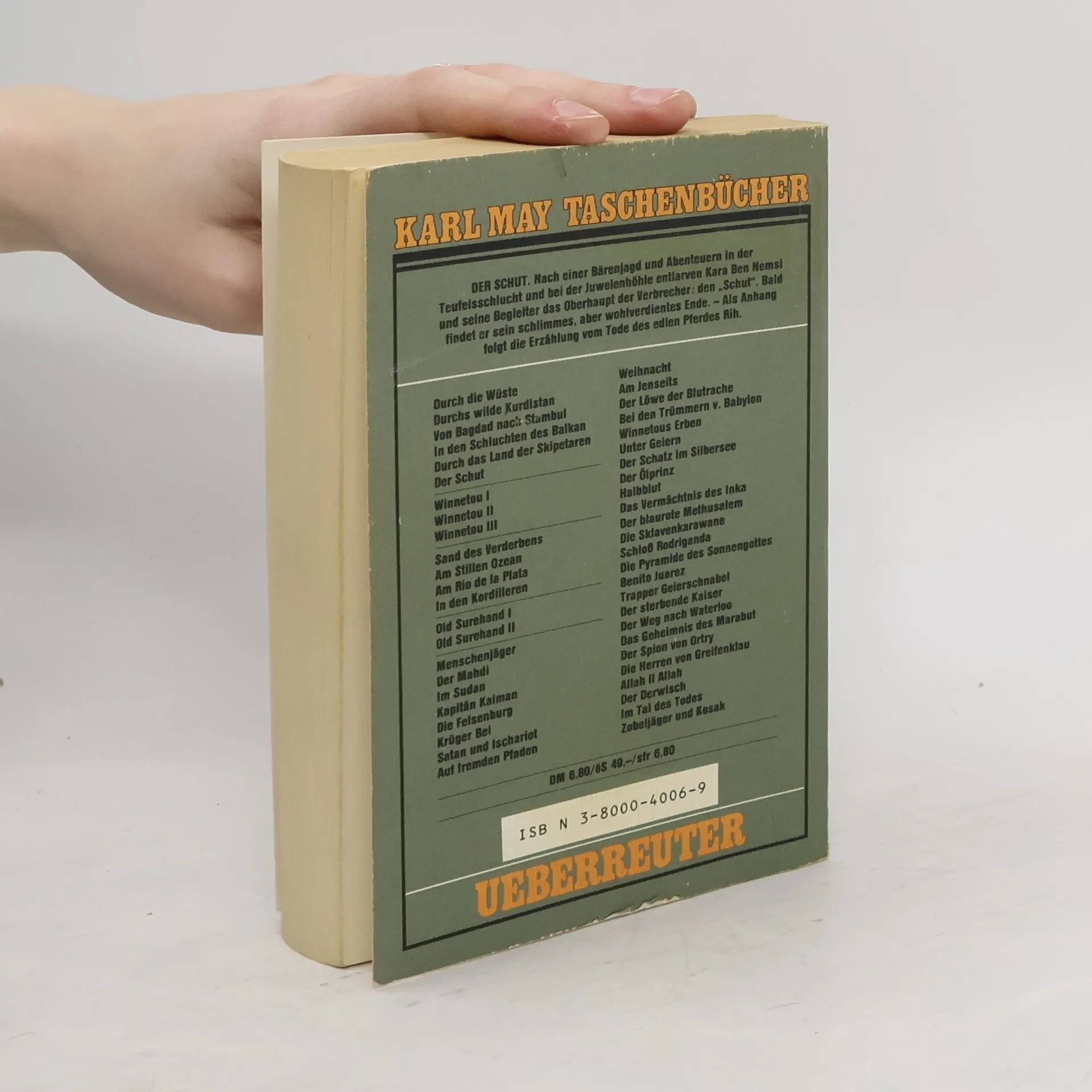Nach Abenteuern in der Teufelsschlucht und bei der Juwelenhöhle treffen Kara Ben Nemsi und seine Begleiter auf das Oberhaupt der Verbrecher, den Schut. Manche gefährliche Situation wird heraufbeschworen, ehe die Jagd, die in der tunesischen Wüste begann, in Albanien zu Ende geht. Der Schut gehört zu einer sechsteiligen Reihe. Weitere Bände: Durch die Wüste (Band 1), Durchs wilde Kurdistan (Band 2), Von Bagdad nach Stambul (Band 3), In den Schluchten des Balkan (Band 4), Durch das Land der Skipetaren (Band 5).