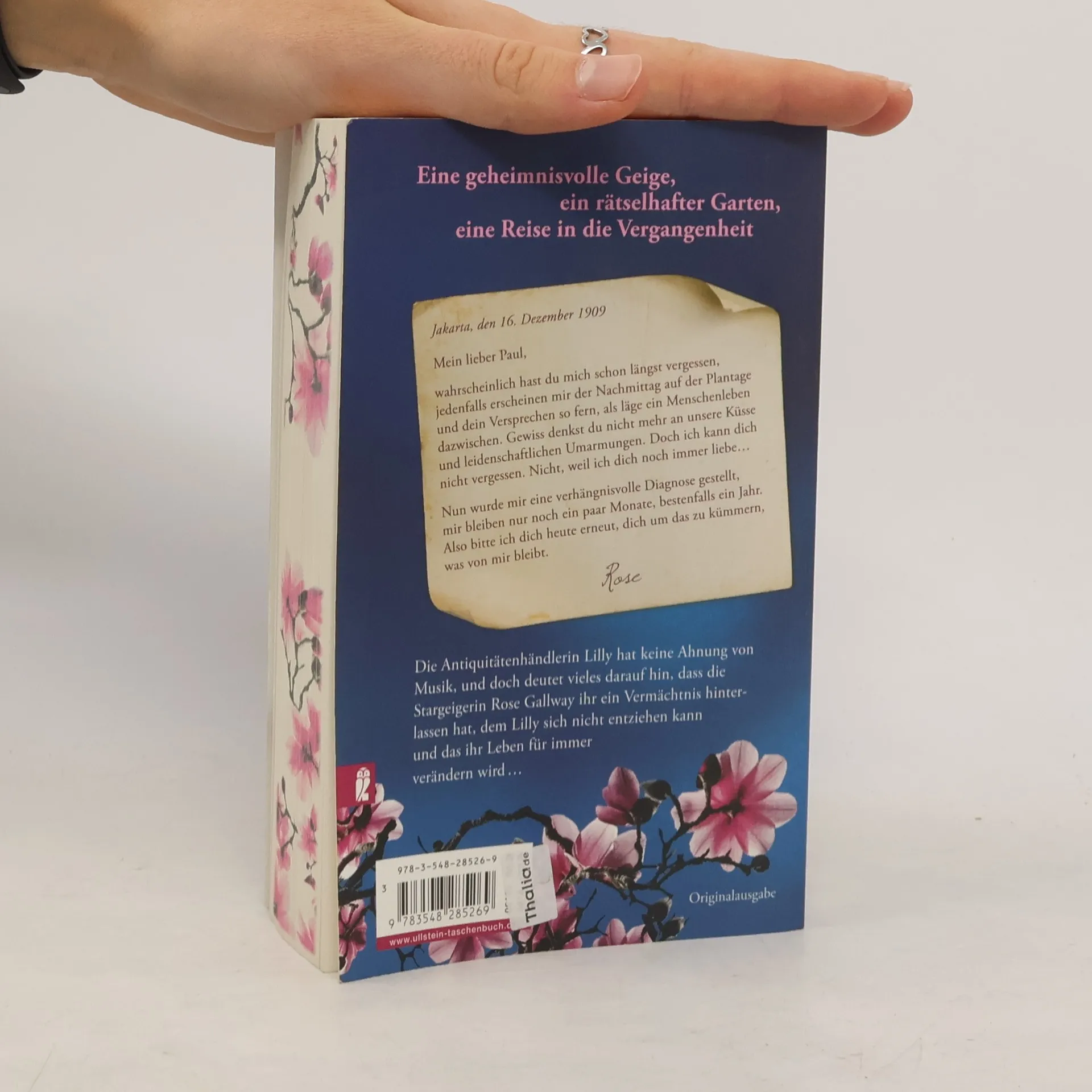 Antiquitätenhändlerin Lilly bekommt eine ungewöhnliche alte Geige angeboten: Auf ihrer Unterseite ist eine Rose ins Holz gebrannt. Lilly ist fasziniert von dem alten Instrument und will das Rätsel der Rose unbedingt entschlüsseln. Sie sucht Hilfe bei dem charmanten Musikexperten Gabriel. Gemeinsam finden die beiden heraus, dass die Geige vor über hundert Jahren einer berühmten Violinistin gehörte, die damals plötzlich verschwand. Gebannt vom geheimnisvollen Schicksal der schönen Frau begibt Lilly sich auf deren Spuren, die sie nach Italien und schließlich nach Sumatra führen. Dort findet sie des Rätsels Lösung – das auch ihr eigenes Leben in seinen Grundfesten erschüttert…
