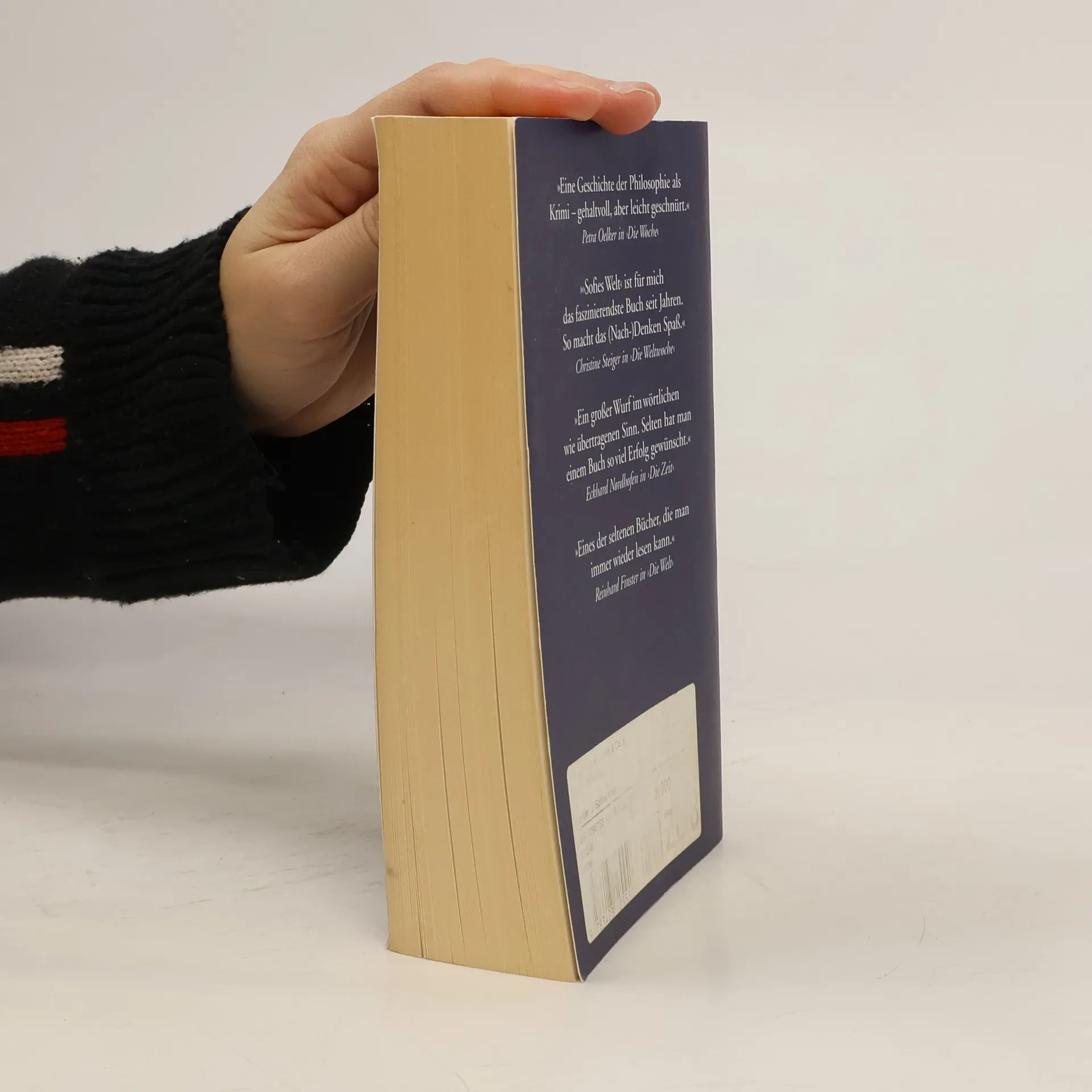 Weg in die geheimnisvolle Gedankenwelt »Ein dickes Buch, mit spitzen Fingern angefaßt und mit Begeisterung zugeklappt: ein großer Wurf im wört-lichen wie übertragenen Sinn.« Die Zeit Mysteriöse Briefe landen im Briefkasten der 15jährigen Sofie Amundsen in Oslo. Was sollen diese Fragen: »Wer bist du?«, »Was ist ein Mensch?« und »Woher kommt die Welt?«. Sofie ist irritiert. Die Briefe werden ausführlicher und entführen sie in die abenteuerliche und geheimnisvolle Gedankenwelt der großen Philosophen. Ihr unbekannter Briefeschreiber erzählt Sofie die Geschichte Europas, der Antike, des Mittelalters und der Renaissance und dann nimmt die Geschichte eine unglaubliche Wendung.