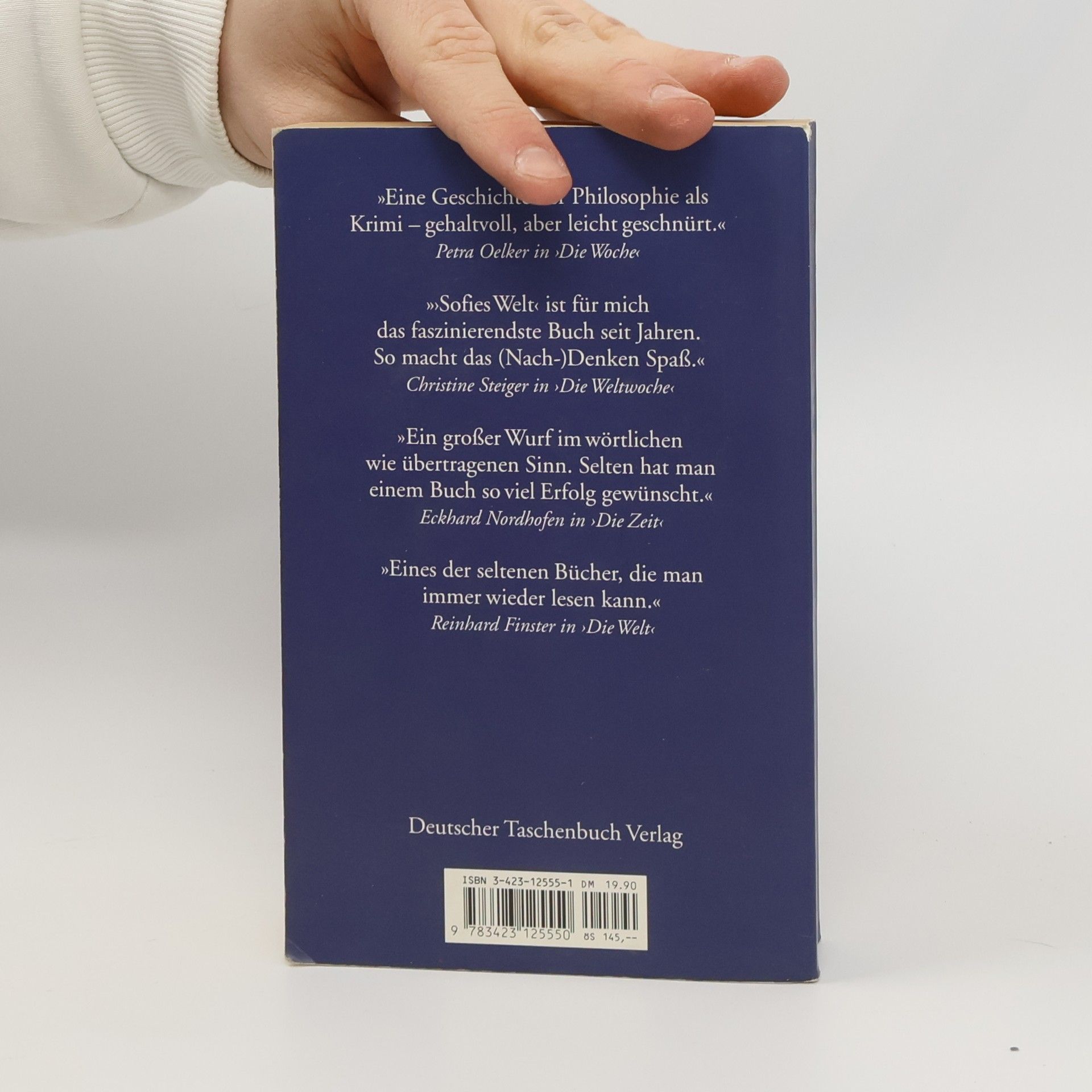 Weg in die geheimnisvolle Gedankenwelt »Ein dickes Buch, mit spitzen Fingern angefaßt und mit Begeisterung zugeklappt: ein großer Wurf im wört-lichen wie übertragenen Sinn.« Die Zeit Mysteriöse Briefe landen im Briefkasten der 15jährigen Sofie Amundsen in Oslo. Was sollen diese Fragen: »Wer bist du?«, »Was ist ein Mensch?« und »Woher kommt die Welt?«. Sofie ist irritiert. Die Briefe werden ausführlicher und entführen sie in die abenteuerliche und geheimnisvolle Gedankenwelt der großen Philosophen. Ihr unbekannter Briefeschreiber erzählt Sofie die Geschichte Europas, der Antike, des Mittelalters und der Renaissance und dann nimmt die Geschichte eine unglaubliche Wendung.