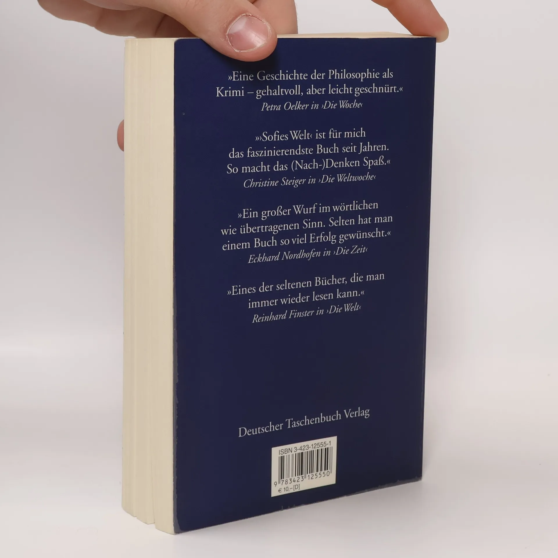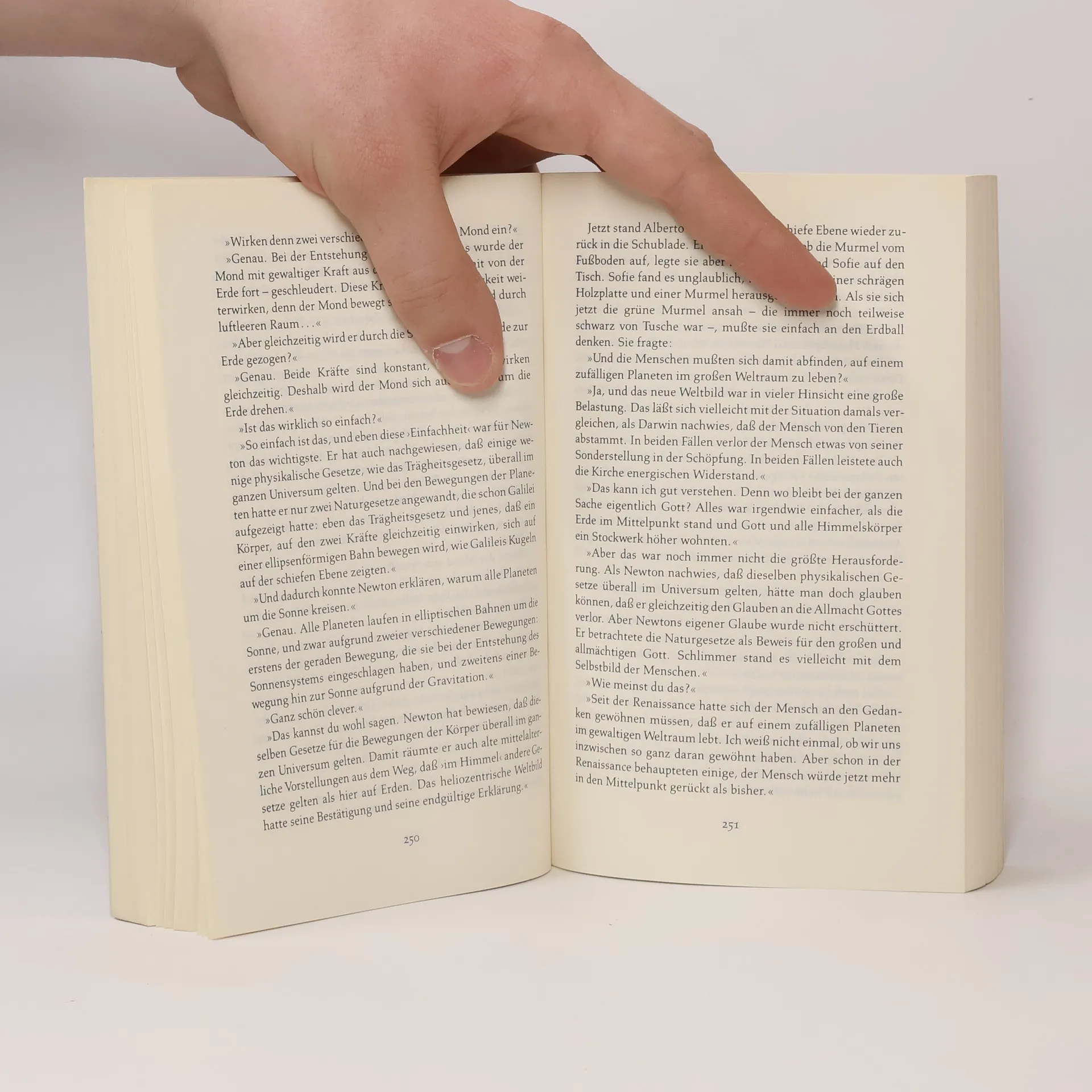 Weg in die geheimnisvolle Gedankenwelt »Ein dickes Buch, mit spitzen Fingern angefaßt und mit Begeisterung zugeklappt: ein großer Wurf im wört-lichen wie übertragenen Sinn.« Die Zeit Mysteriöse Briefe landen im Briefkasten der 15jährigen Sofie Amundsen in Oslo. Was sollen diese Fragen: »Wer bist du?«, »Was ist ein Mensch?« und »Woher kommt die Welt?«. Sofie ist irritiert. Die Briefe werden ausführlicher und entführen sie in die abenteuerliche und geheimnisvolle Gedankenwelt der großen Philosophen. Ihr unbekannter Briefeschreiber erzählt Sofie die Geschichte Europas, der Antike, des Mittelalters und der Renaissance und dann nimmt die Geschichte eine unglaubliche Wendung.
