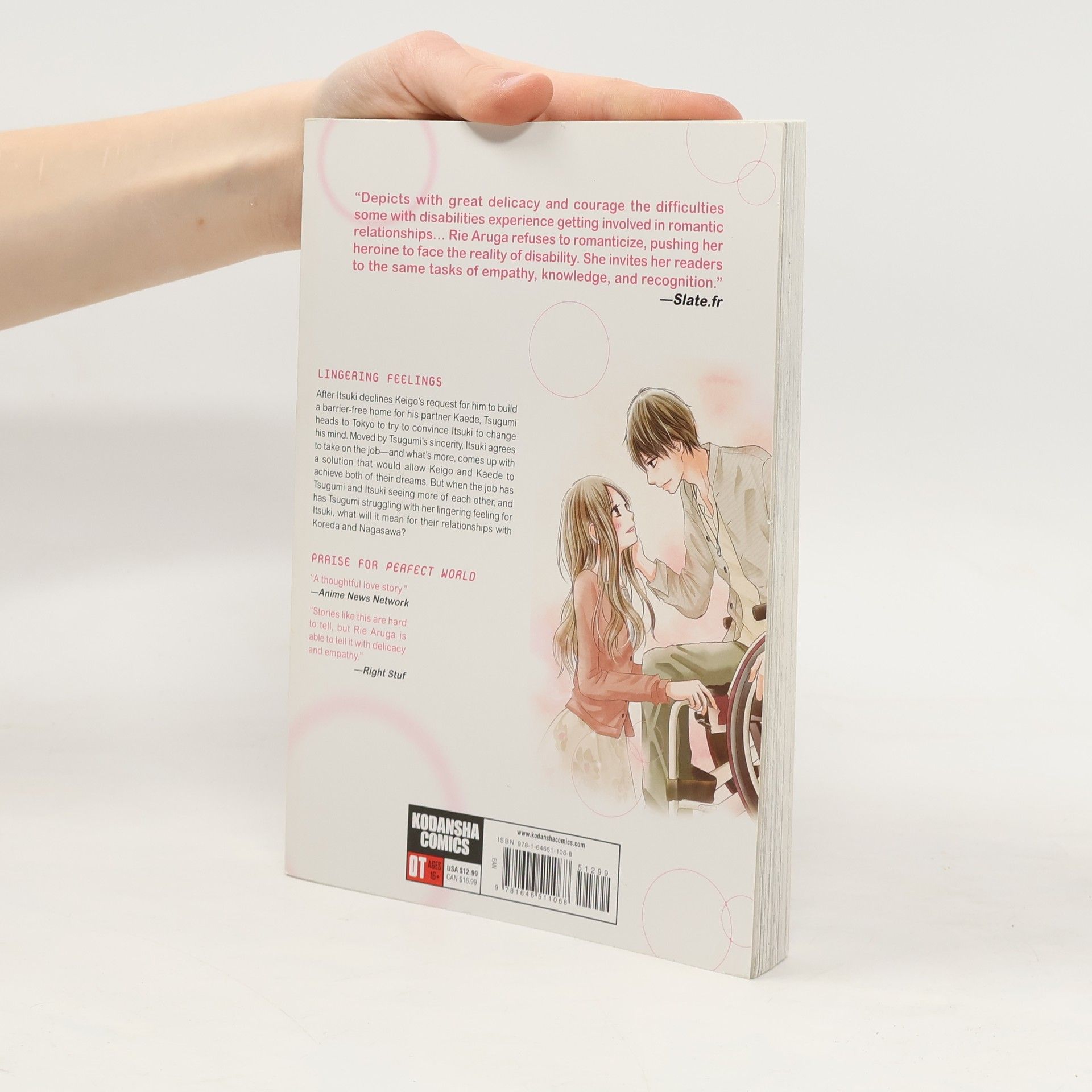 The moving, provocative manga about the struggles and triumphs in love of a woman and a man who uses a wheelchair comes to print! Fans of tumultuous manga romance -- like A Silent Voice and Your Lie in April -- don't miss this! LINGERING FEELINGS After Itsuki declines Keigo’s request for him to build a barrier-free home for his partner Kaede, Tsugumi heads to Tokyo to try to convince Itsuki to change his mind. Moved by Tsugumi’s sincerity, Itsuki agrees to take on the job—and what’s more, comes up with a solution that would allow Keigo and Kaede to achieve both of their dreams. But when the job has Tsugumi and Itsuki seeing more of each other, and has Tsugumi struggling with her lingering feeling for Itsuki, what will it mean for their relationships with Koreda and Nagasawa?
