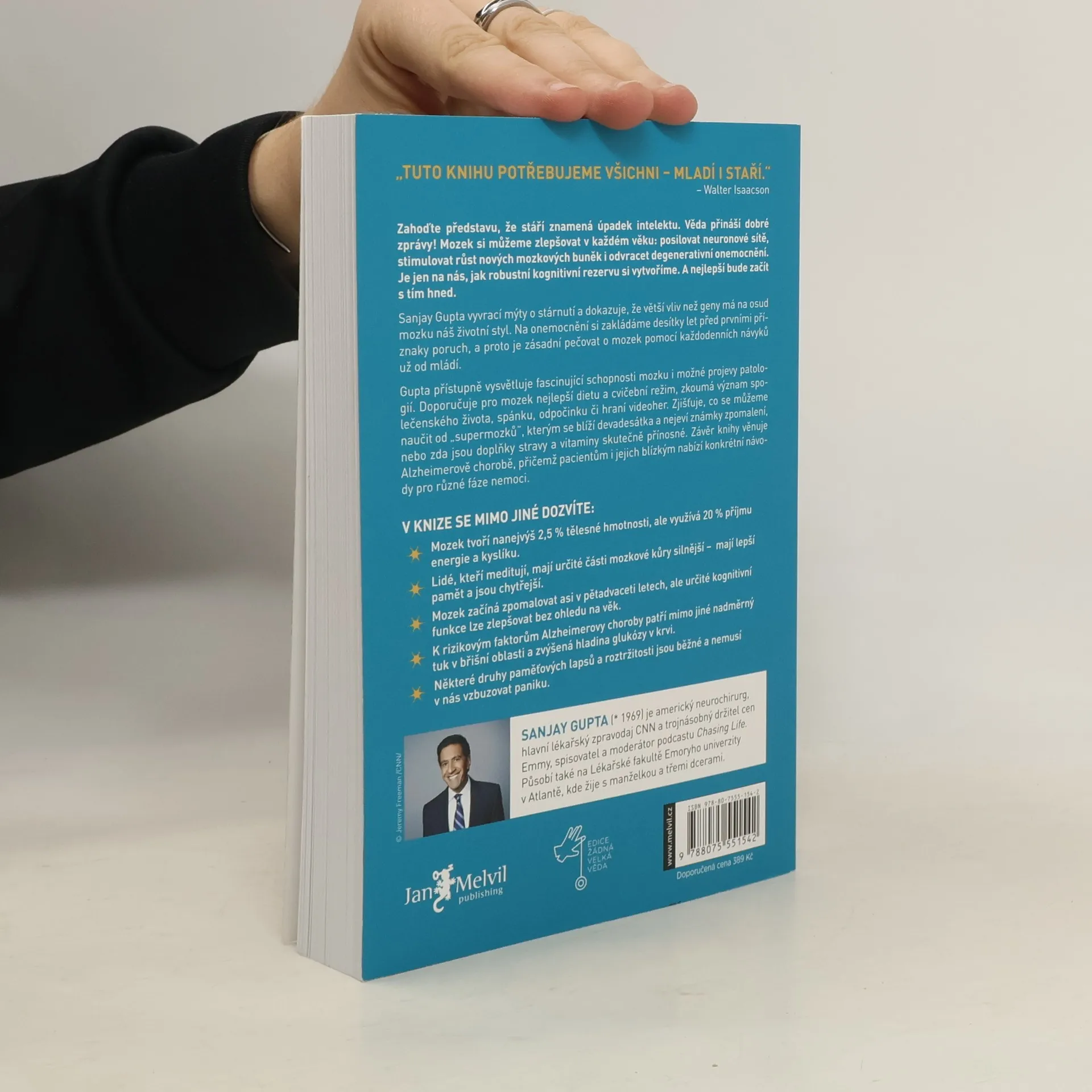 Zahoďte představu, že stáří znamená úpadek intelektu. Věda přináší dobré zprávy: mozek si můžeme zlepšovat v každém věku, posilovat neuronové sítě a odvracet degenerativní onemocnění. Klíčové je, jak robustní kognitivní rezervu si vytvoříme, a je nejlepší začít hned. Sanjay Gupta vyvrací mýty o stárnutí a ukazuje, že náš životní styl má větší vliv na osud mozku než geny. Onemocnění si zakládáme desítky let před prvními příznaky, proto je důležité pečovat o mozek už od mládí. Gupta přístupně vysvětluje fascinující schopnosti mozku a doporučuje nejlepší dietu a cvičební režim. Zkoumá význam společenského života, spánku a hraní videoher. Zjistí, co se můžeme naučit od „supermozků“ blížících se devadesátce, a zkoumá přínos doplňků stravy a vitaminů. Závěr knihy se věnuje Alzheimerově chorobě a nabízí konkrétní návody pro pacienty a jejich blízké. V knize se dozvíte, že mozek tvoří 2,5 % tělesné hmotnosti, ale využívá 20 % energie a kyslíku. Lidé, kteří meditují, mají silnější části mozkové kůry a lepší paměť. Mozek začíná zpomalovat kolem pětadvaceti let, ale kognitivní funkce lze zlepšovat bez ohledu na věk. Rizikovými faktory Alzheimerovy choroby jsou nadměrný břišní tuk a zvýšená hladina glukózy. Některé paměťové lapsy jsou běžné a nemusí vyvolávat paniku.