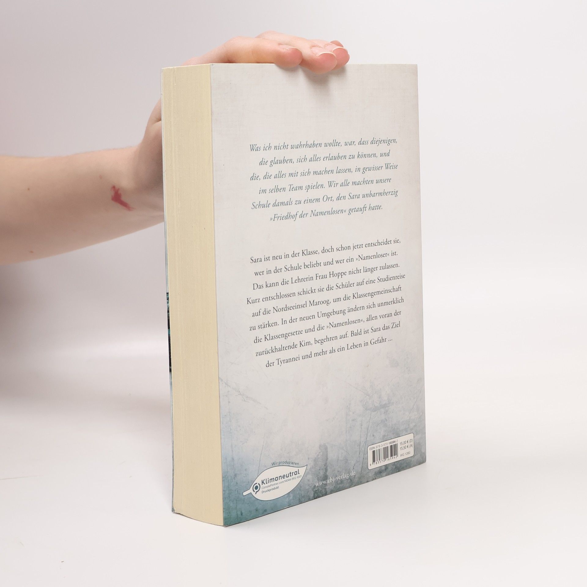 Wer oben stand, wird unten sein – die Namenlosen begehren aufDer jungen Geschichtslehrerin Frau Hoppe reicht Sara, selbsternannte Fürstin der Klasse, entscheidet, wer in der Schule – von ihr nur »Friedhof der Namenlosen« genannt – beliebt und wer ein Namenloser ist. Kurz entschlossen schickt Frau Hoppe die Klasse auf eine Klassenreise auf die Nordseeinsel Maroog. Das den echten Friedhof der Namenlosen zu restaurieren und die Klassengemeinschaft zu stärken. Was sie nicht In der neuen Umgebung ändern sich auch die Klassengesetze und die Namenlosen, allen voran der zurückhaltende Kim, begehren auf. Bald ist Sara das Ziel der Tyrannei und mehr als ein Leben in Gefahr …