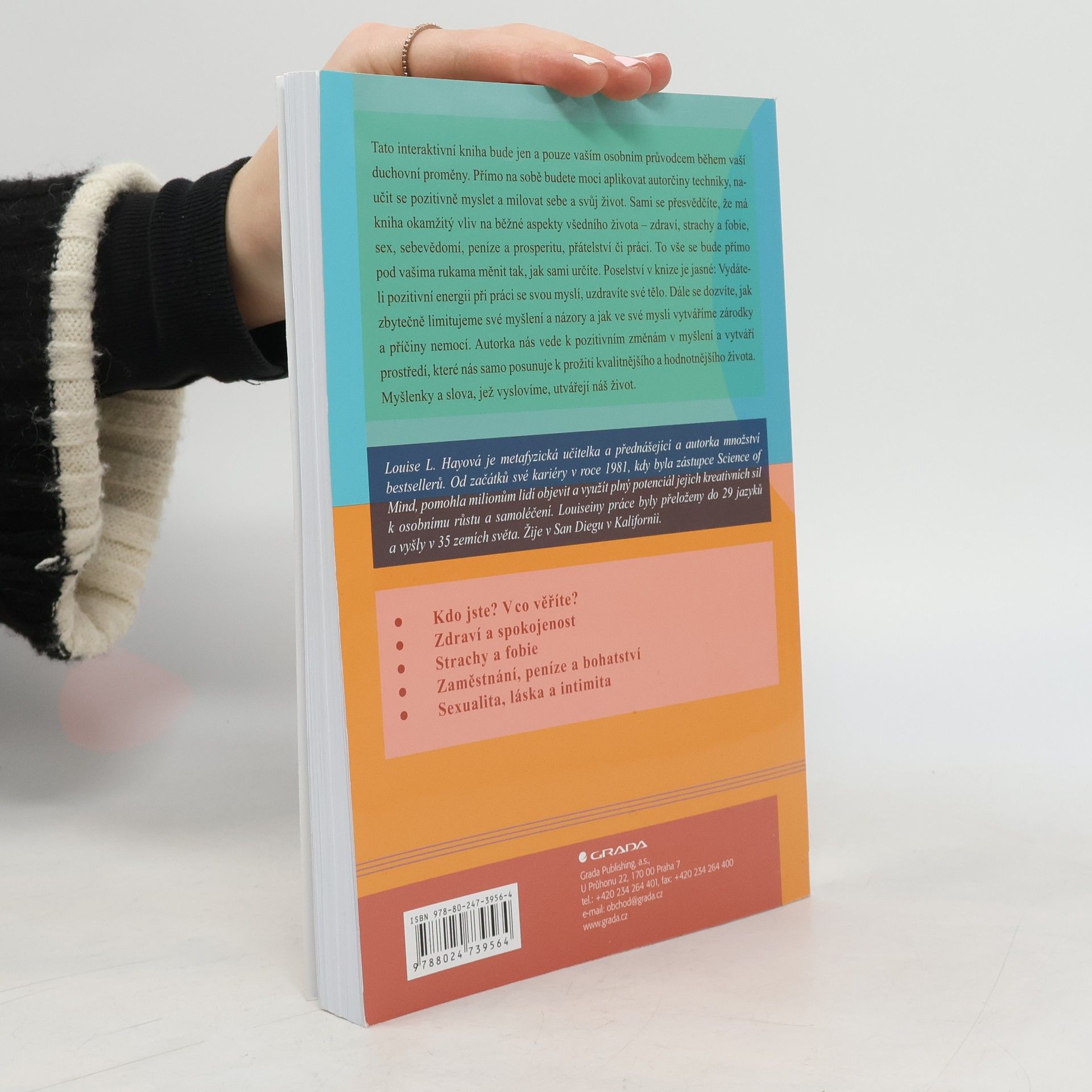 Tato interaktivní kniha bude jen a pouze vaším osobním průvodcem během vaší duchovní proměny. Přímo na sobě budete moci aplikovat autorčiny techniky, naučit se pozitivně myslet a milovat sebe a svůj život. Sami se přesvědčíte, že má kniha okamžitý vliv na běžné aspekty všedního života - zdravé, strachy a fóbie, sex, seběvedomí, peníze a peosperita, přátelství či práce - to vše se bude přímo pod vašima rukama měnit tak, jak sami určíte. Poselství v knize je jasné: Vydáte-li pozitivní energii při práci se svou myslí, uzdravíte své tělo. Dále se dozvíte, jak zbytečně limitujeme své myšlení a názory a jak ve své mysli vytváříme zárodky a příčiny nemocí. Autorka nás vede k pozitivním změnám v myšlení a vytváří prostředí, které nás samo posunuje k prožití kvalitnějšího a hodnotnějšího života. Myšlenky a slova, která vyslovíme, tvoří náš život.