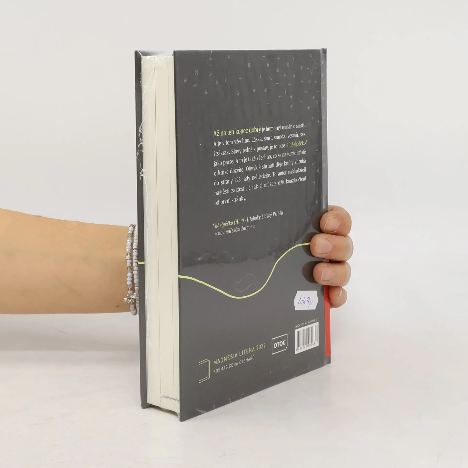 Humorný román o smrti. A je v tom všechno. Láska, smrt, sranda, vesmír, sex i zázrak. Slovy jedné z postav, je to prostě „háelpéčko* jako prase“. (*háelpéčko (HLP) –Hluboký Lidský Příběh v novinářském žargonu)