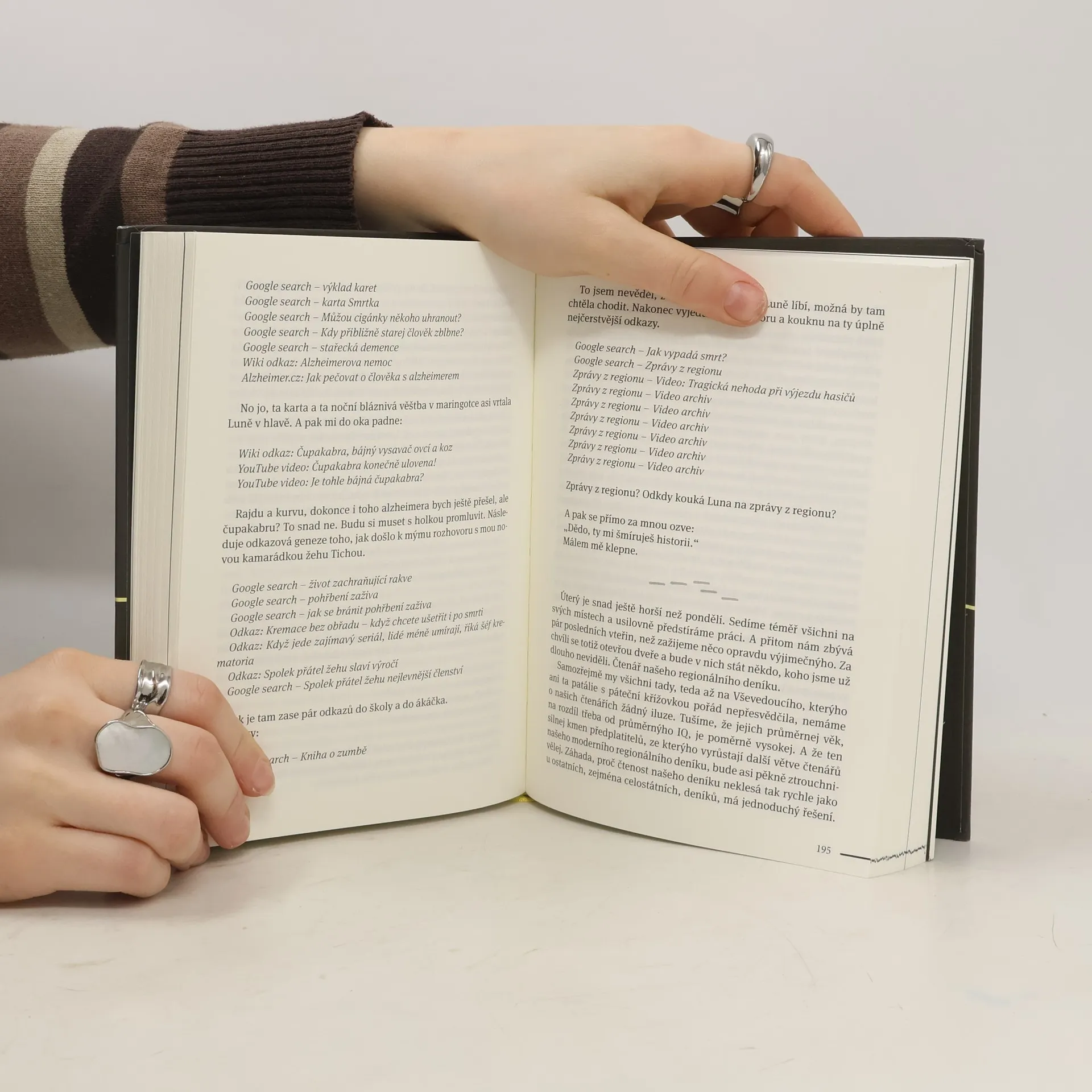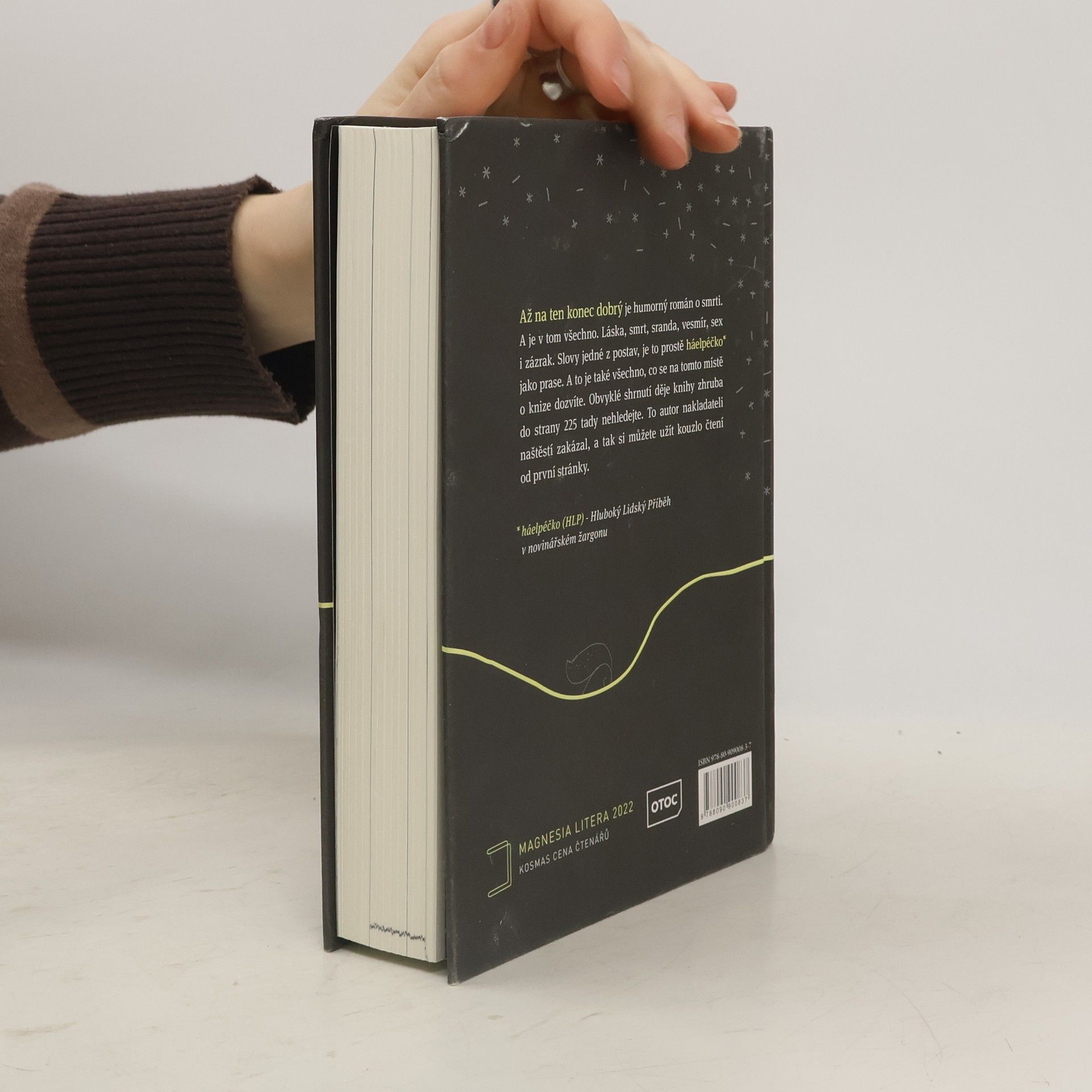 Humorný román o smrti. A je v tom všechno. Láska, smrt, sranda, vesmír, sex i zázrak. Slovy jedné z postav, je to prostě „háelpéčko* jako prase“. (*háelpéčko (HLP) –Hluboký Lidský Příběh v novinářském žargonu)