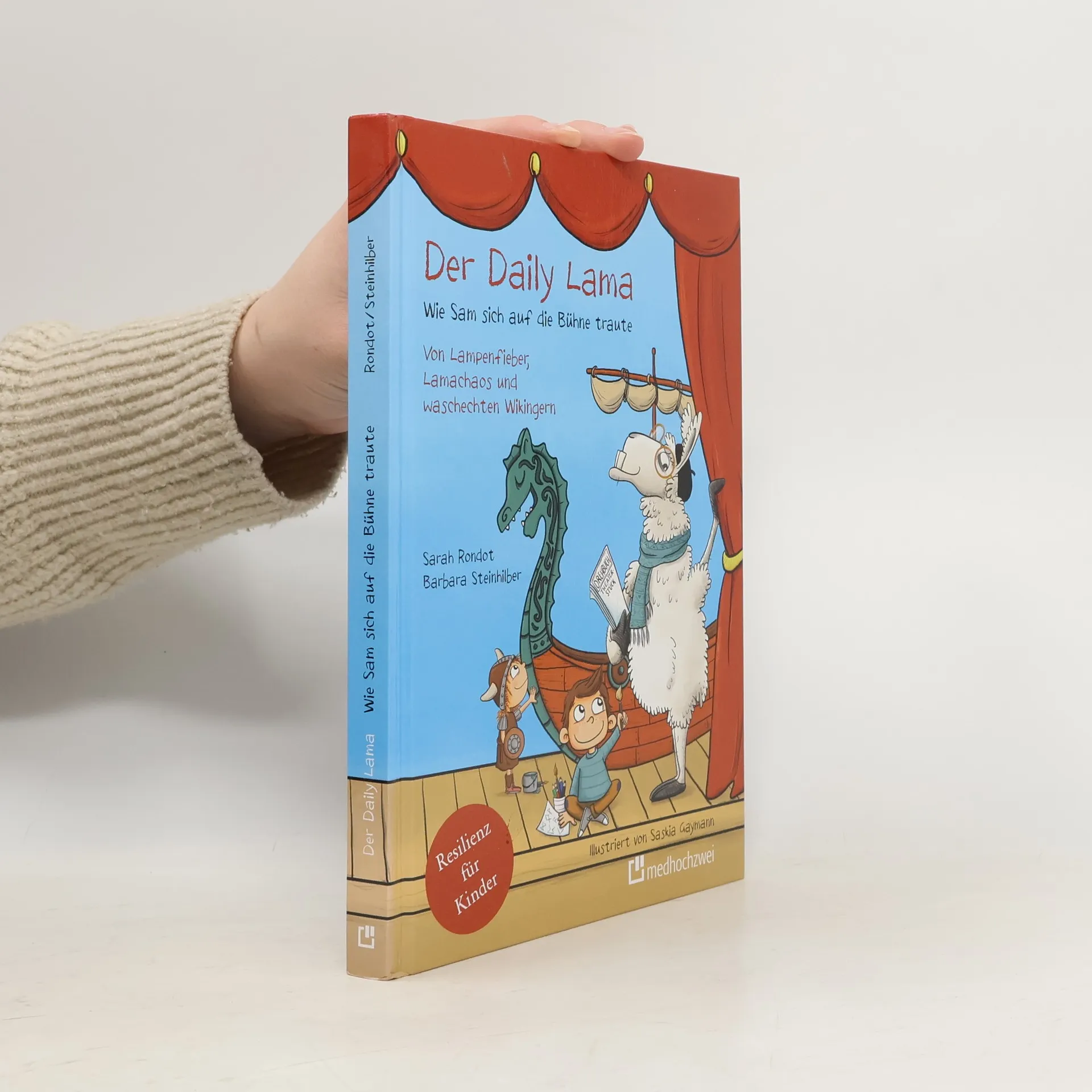Stark durch Krisen mit dem Daily Lama "Lass den Kopf nicht hängen“, bekommen Kinder oft von Erwachsenen zu hören. Leichter gesagt als getan! Was tun, wenn man sich aber schon wochenlang auf einen Ausflug gefreut hat, und dann regnet es und alle Pläne fallen ins Wasser? Oder, wenn man überzeugt ist, beim nächsten Handballturnier die Trophäe zu gewinnen und man verliert haushoch Sam hat eine Rolle im Theaterstück seiner Schule ergattert. Das ist aufregend, denn das heißt, dass er vor ganz vielen Leuten auf der Bühne stehen muss - und das im Wikingerkostüm! Allein beim Gedanken daran schlottern ihm die Knie. Nur gut, dass es den Daily Lama gibt: ein sprechendes Lama, das spezialisiert ist auf alles, was mit Entspannung und Meditation zu tun hat. Sams tiefenentspannter Freund ist zufälligerweise auch der Regisseur des Stücks und mitgebracht hat er gleich eine ganze Bande von Lamas, die Sam und den anderen Kindern der Theater-AG mit Kostümen, Ratschlägen, guter Laune und Pausensnacks zur Seite stehen. In einer aufregenden Freizeitwoche geht Sams Theater-AG durch zahlreiche kleine und große Krisen, und erforschen dabei die Wikinger-Siedlung Haithabu. Sie schöpfen Mut aus ihren Erfolgen und Misserfolgen; sie lernen, sich mehr zu trauen, über ihren Schatten zu springen und stellen am Ende schließlich ein tolles Theaterstück auf die Beine