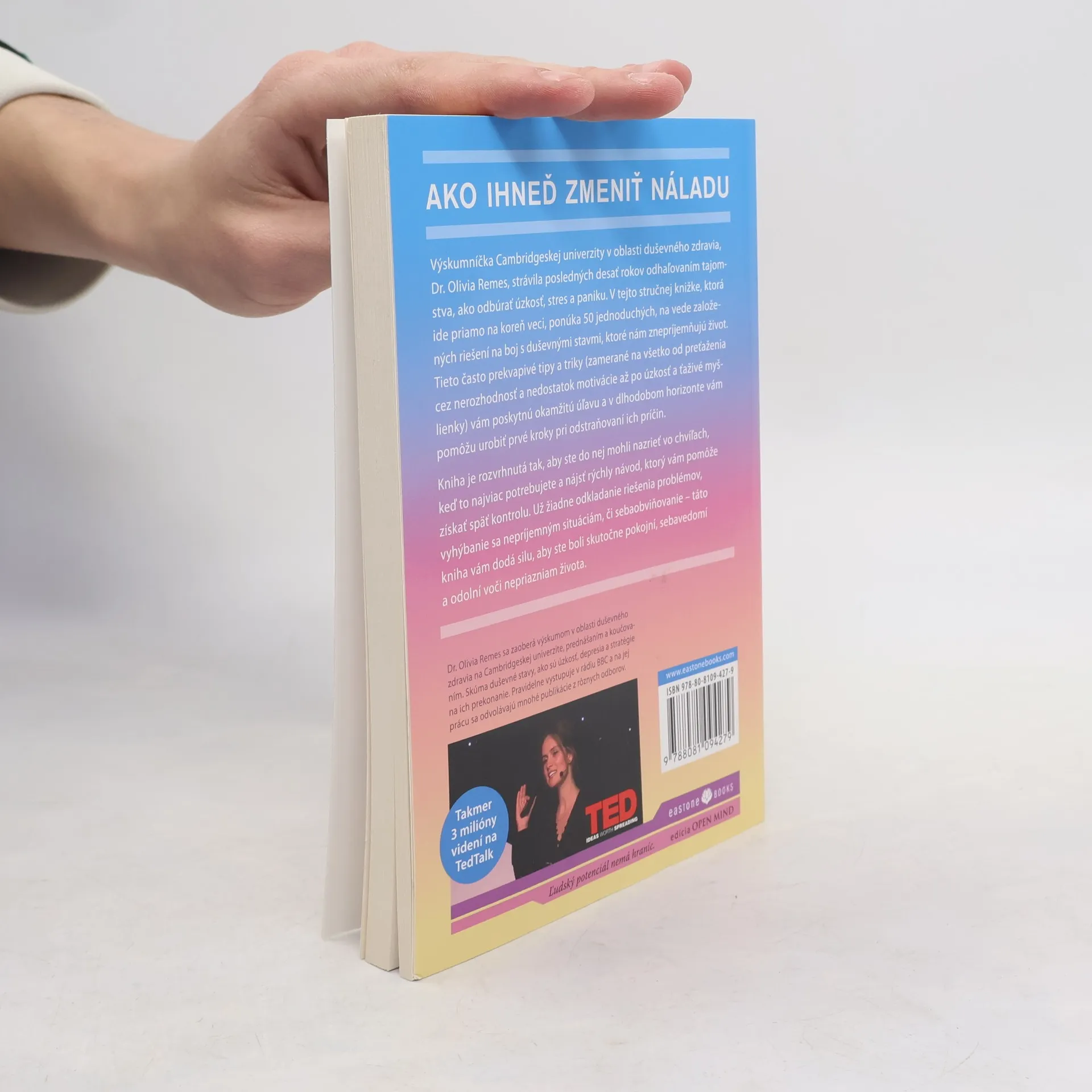 Výskumníčka Cambridgeskej univerzity v oblasti duševného zdravia, Dr. Olivia Remes, strávila posledných desať rokov odhaľovaním tajomstva, ako odbúrať úzkosť, stres a paniku. V tejto stručnej knižke, ktorá ide priamo na koreň veci, ponúka 50 jednoduchých, na vede založených riešení na boj s duševnými stavmi, ktoré nám znepríjemňujú život. Tieto často prekvapivé tipy a triky zamerané na všetko od preťaženia cez nerozhodnosť a nedostatok motivácie až po úzkosť a ťaživé myšlienky vám poskytnú okamžitú úľavu a v dlhodobom horizonte vám pomôžu urobiť prvé kroky pri odstraňovaní ich príčin. Kniha je navrhnutá tak, aby ste do nej mohli nazrieť vo chvíľach, keď to najviac potrebujete a nájsť rýchly návod, ktorý vám pomôže získať späť kontrolu.