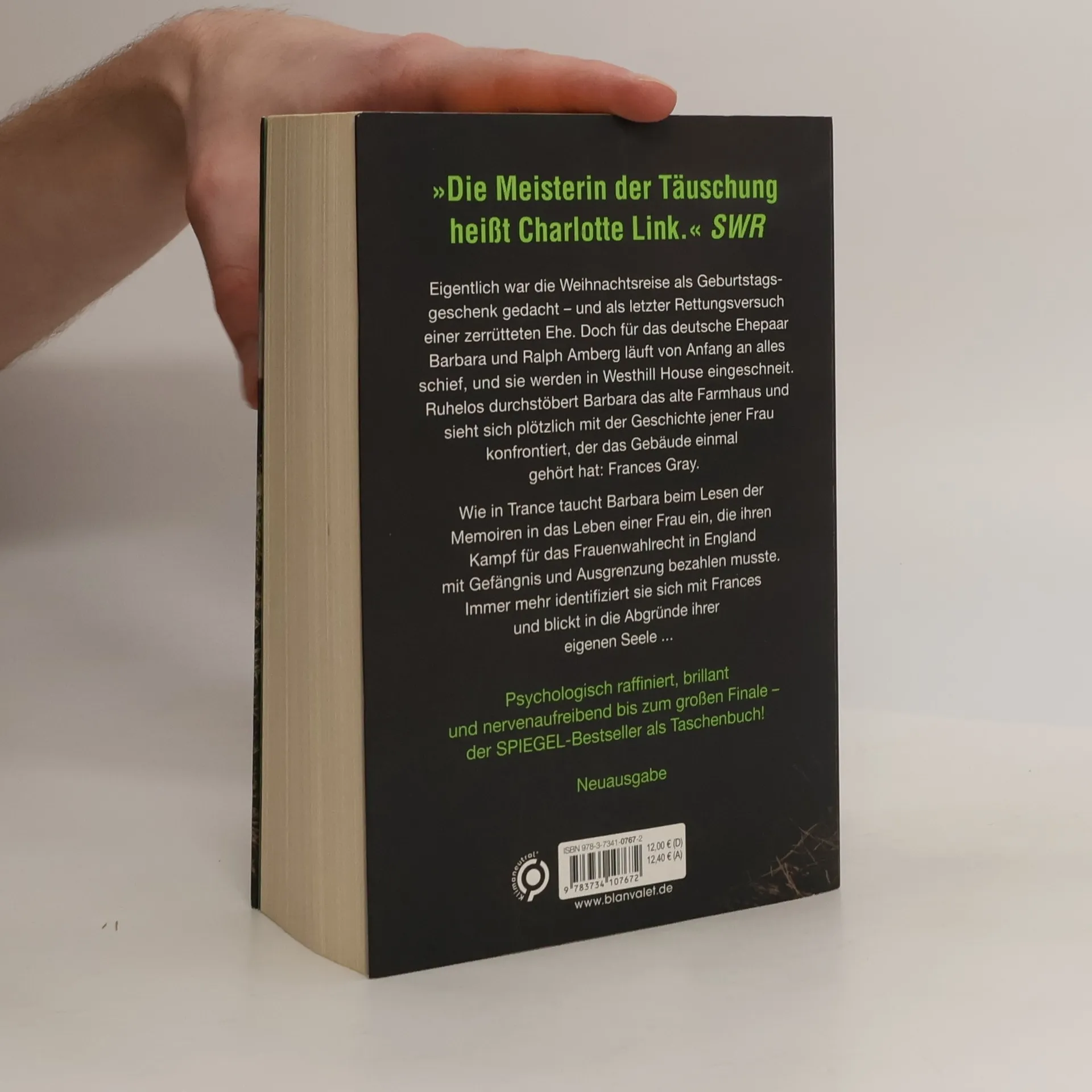 Ein einsames Farmhaus im Hochmoor Yorkshires. Ein jahrzehntealtes, bedrohliches Geheimnis. Eine Fremde, die die Mauern des Schweigens zum Einsturz bringt … Eigentlich war die Weihnachtsreise als Geburtstagsgeschenk gedacht – und als letzter Rettungsversuch einer zerrütteten Ehe. Doch für das deutsche Ehepaar Barbara und Ralph Amberg läuft von Anfang an alles schief und sie werden in Westhill House eingeschneit. Ruhelos und getrieben, durchstöbert Barbara die Räume des alten Farmhauses und sieht sich plötzlich mit der Lebensgeschichte jener Frau konfrontiert, der Westhill House einmal gehört hat: Frances Gray. Wie in Trance taucht Barbara beim Lesen der Memoiren in ein beklemmendes Geflecht aus Liebe und Hass, Verachtung, Abhängigkeit und unbändigem Freiheitswillen. Mehr und mehr identifiziert sie sich mit Frances und blickt in die Abgründe ihrer eigenen Seele. Schließlich ist eine Entscheidung unausweichlich, die nicht nur Barbaras Leben radikal verändern wird ... Millionen Fans sind von den fesselnden Spannungsromanen Charlotte Links begeistert. Psychologisch komplexe Figuren, dunkle Geheimnisse und raffiniert komponierte Kriminalfälle erwarten Sie. Alle Bücher können unabhängig voneinander gelesen werden.