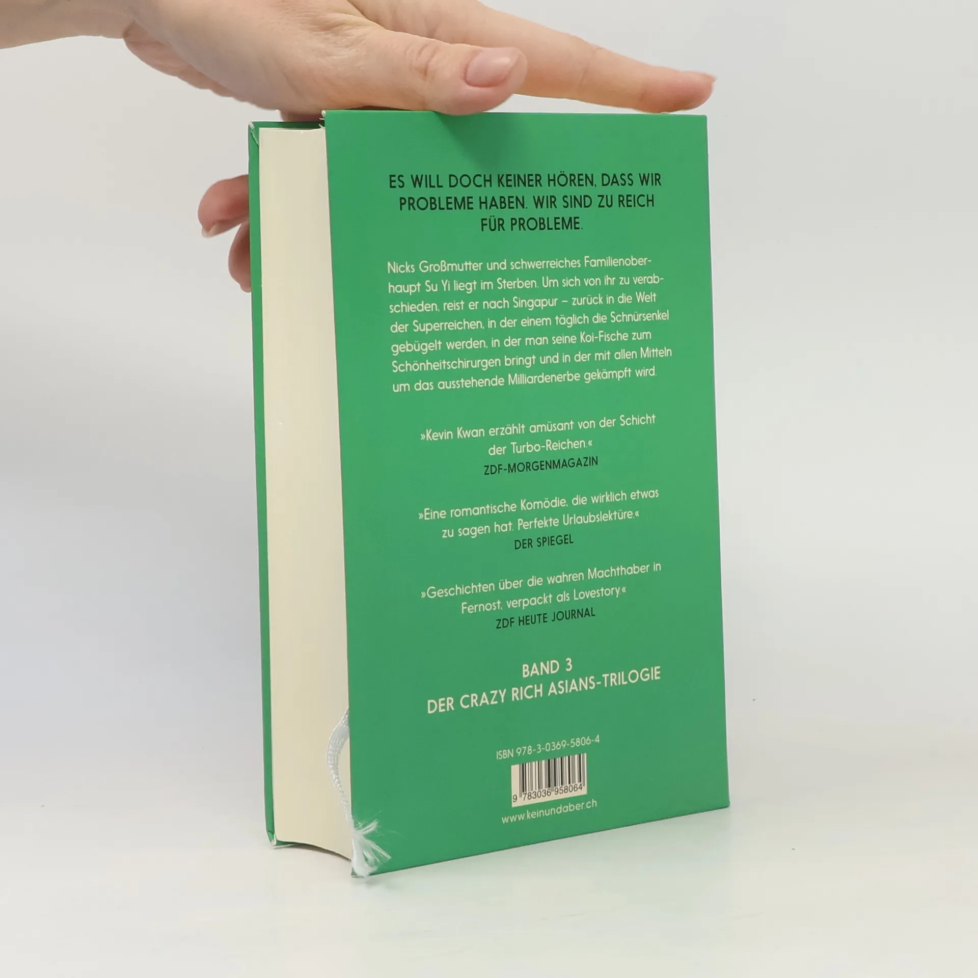 Nicks Großmutter und schwerreiches Familienoberhaupt Su Yi liegt im Sterben. Um sich von ihr zu verabschieden, reist er nach Singapur – zurück in die Welt der Superreichen, in der einem täglich die Schnürsenkel gebügelt werden, in der man seine Koi-Fische zum Schönheitschirurgen bringt und in der mit allen Mitteln um das ausstehende Milliardenerbe gekämpft wird.