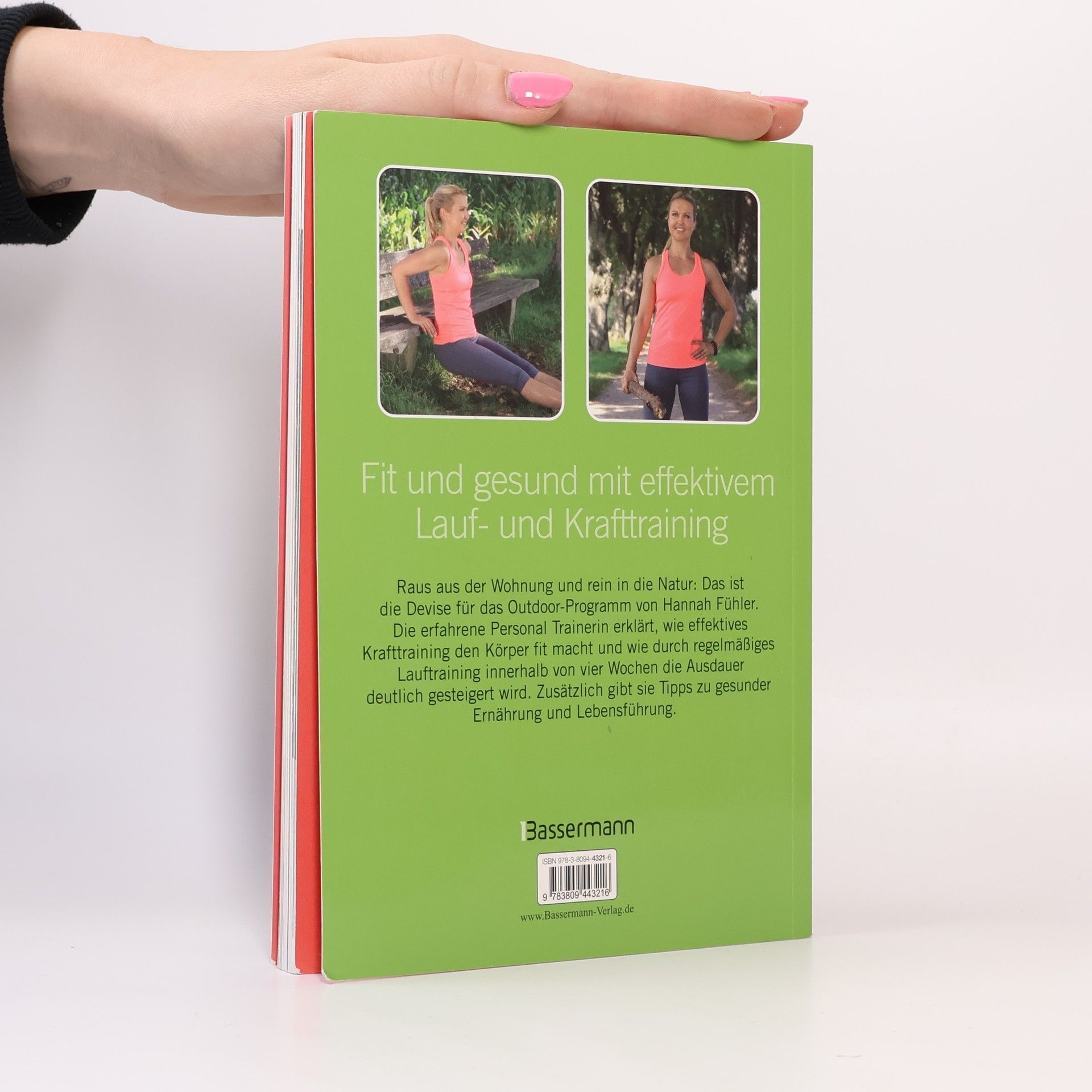 Raus aus der Wohnung und rein in die Natur: Das ist die Devise für das Outdoor-Programm von Hannah Fühler. Die erfahrene Personal Trainerin erklärt, wie effektives Krafttraining den Körper fit macht und wie durch regelmäßiges Lauftraining innerhalb von vier Wochen die Ausdauer deutlich gesteigert wird. Zusätzlich gibt sie Tipps zu gesunder Ernährung und Lebensführung. Ausstattung: Mit DVD und 160 Farbfotos und Farbillustrationen