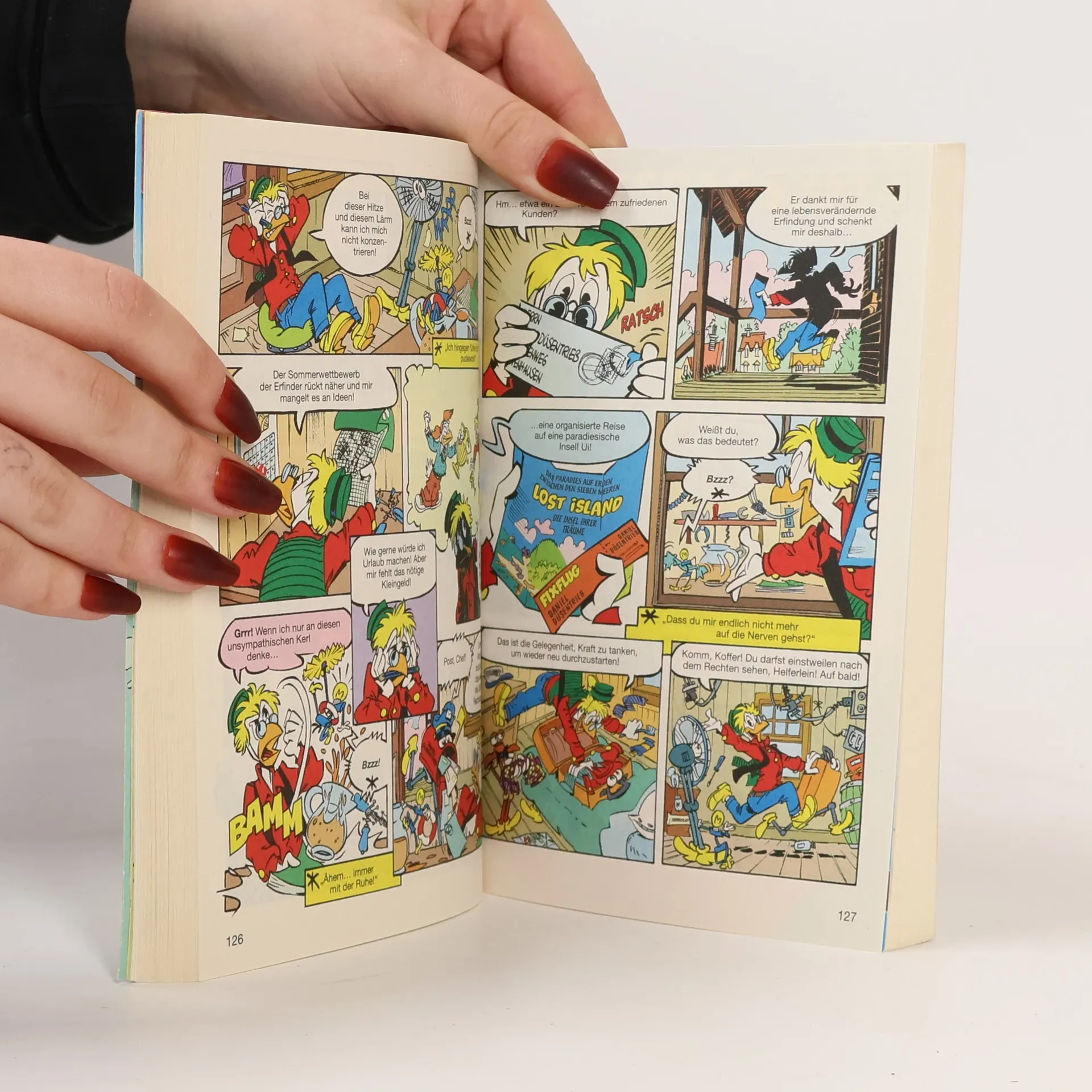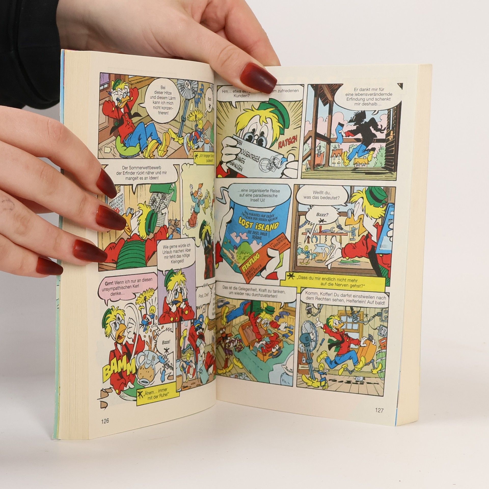 Ach ja, der Sommer! Manche verbringen die vielleicht schönste Zeit des Jahres am Strand, andere in den Bergen und wieder andere in der heimischen Hängematte. Donald Duck zum Beispiel. Ihm fehlt das nötige Kleingeld für weite Reisen. Damit der Urlaub zu Hause kein Reinfall wird, bedarf es einer guten Vorbereitung. Die Erfrischungen müssen bereitgestellt, das Planschbecken gefüllt und der Strand im Vorgarten aufgeschüttet werden. Und damit könnten sie dann eigentlich beginnen, die Ferien zu Hause, wenn ... tja, wenn das Wörtchen wenn nicht wäre ... Und noch einem fehlen die nötigen finanziellen Mittel für den Urlaub: Daniel Düsentrieb. Dabei bräuchte der Diplom-Ingenieur dringend eine Pause, um Kraft zu tanken und neu durchzustarten. Der Sommerwettbewerb der Erfinder steht an und dem Genie mangelt es an Ideen. Da kommt ihm die Einladung zu einer organisierten Reise auf eine paradiesische Insel gerade recht. Doch als er endlich an der vermeintlichen Oase der Glückseligkeit angelangt ist, erwartet ihn eine böse Überraschung.