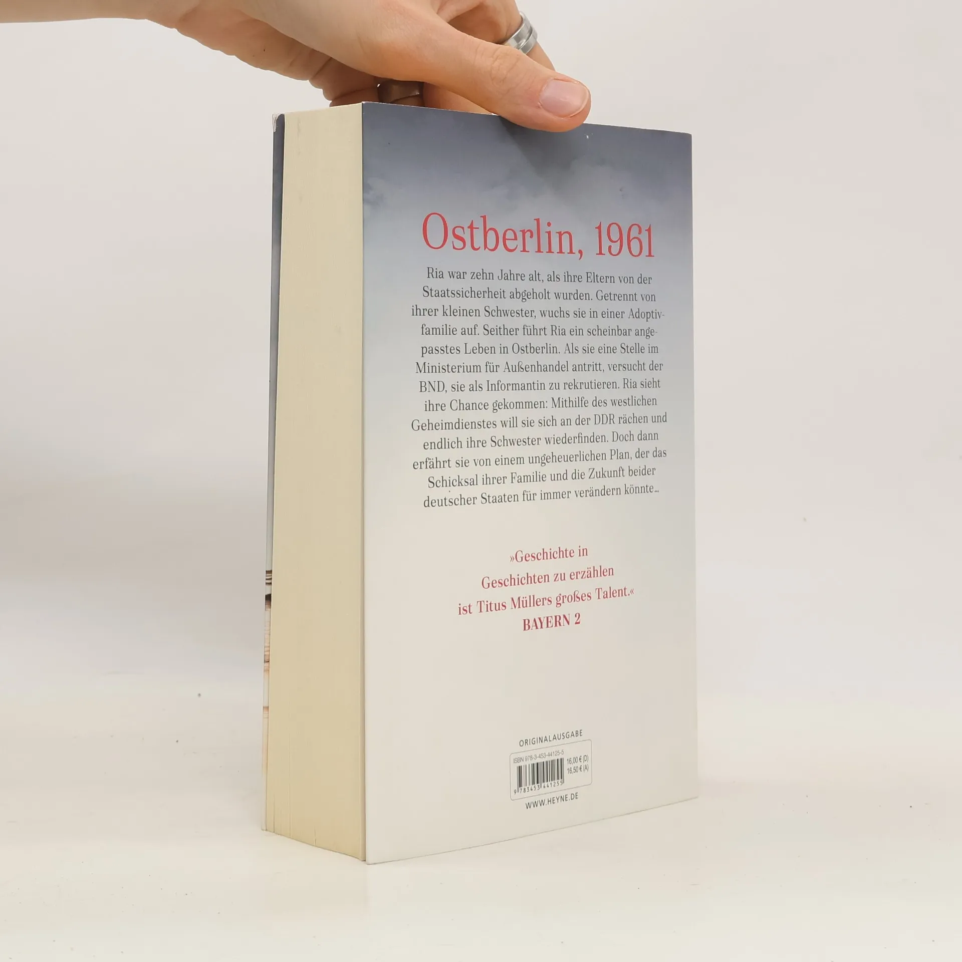 Ria ist zehn Jahre alt, als ihre Eltern von der Staatssicherheit abgeholt werden. Sie wird von ihrer kleinen Schwester getrennt und in einer Adoptivfamilie untergebracht. Seither führt Ria in Ostberlin ein scheinbar angepasstes Leben. Erst als der BND sie als Informantin rekrutiert, sieht sie ihre Chance gekommen. Mithilfe des westlichen Geheimdienstes will Ria sich an der DDR rächen und endlich ihre Schwester wiederfinden. Doch dann erfährt sie im Sommer 1961 von einem ungeheuerlichen Plan, der ihr Schicksal und die Zukunft beider deutscher Staaten für immer verändern könnte …