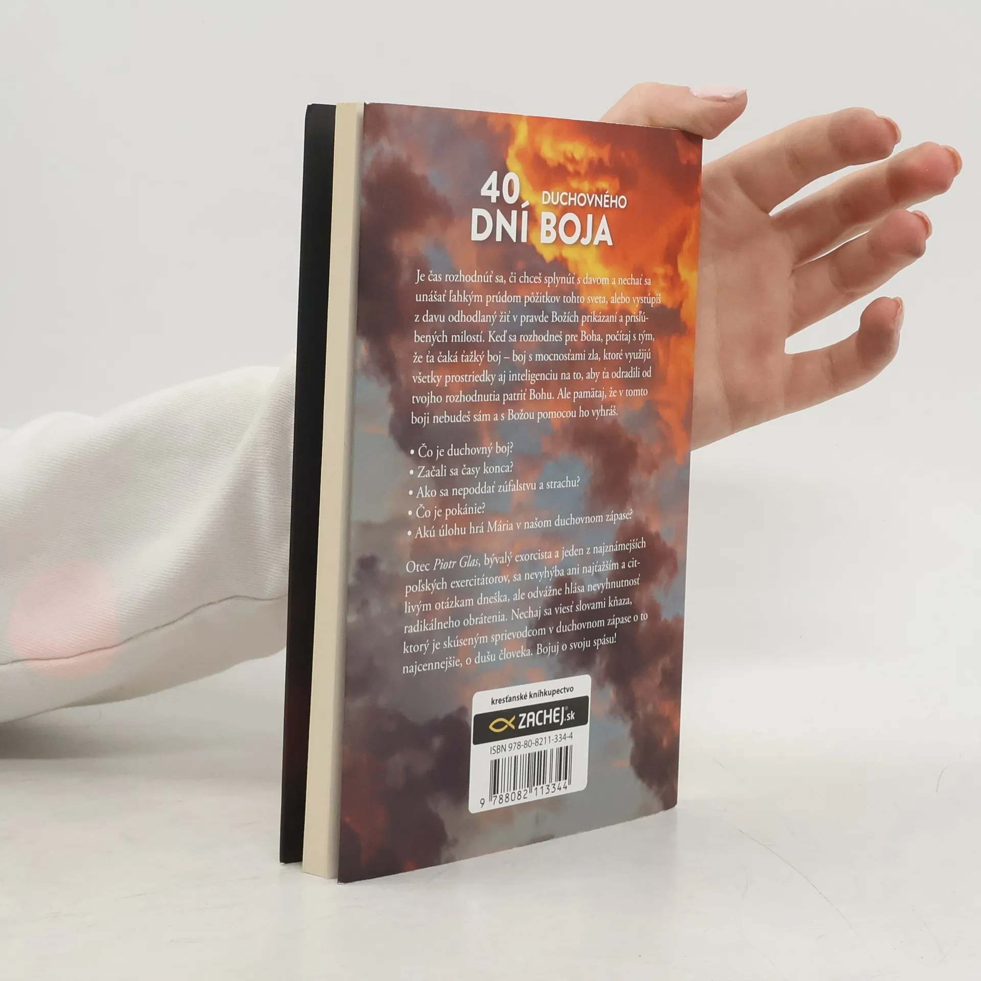 Je čas rozhodnúť sa, či chceš splynúť s davom a nechať sa unášať ľahkým prúdom pôžitkov tohto sveta, alebo vystúpiš z davu odhodlaný žiť v pravde Božích prikázaní a prisľúbených milostí. Keď sa rozhodneš pre Boha, počítaj s tým, že ťa čaká ťažký boj boj s mocnosťami zla, ktoré využijú všetky prostriedky aj inteligenciu na to, aby ťa odradili od tvojho rozhodnutia patriť Bohu. Ale pamätaj, že v tomto boji nebudeš sám a s Božou pomocou ho vyhráš. Čo je duchovný boj? Začali sa časy konca? Ako sa nepoddať zúfalstvu a strachu? Čo je pokánie? Akú úlohu hrá Mária v našom duchovnom zápase? Otec Piotr Glas, bývalý exorcista a jeden z najznámejších poľských exercitátorov, sa nevyhýba ani najťažším a citlivým otázkam dneška, ale odvážne hlása nevyhnutnosť radikálneho obrátenia. Nechaj sa viesť slovami kňaza, ktorý je skúseným sprievodcom v duchovnom zápase o to najcennejšie, o dušu človeka. Bojuj o svoju spásu!