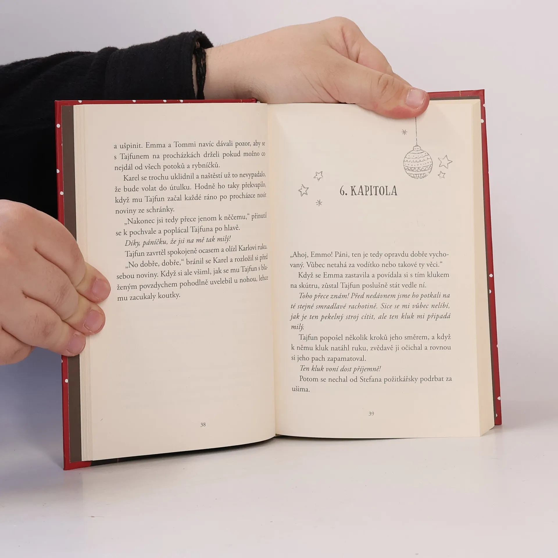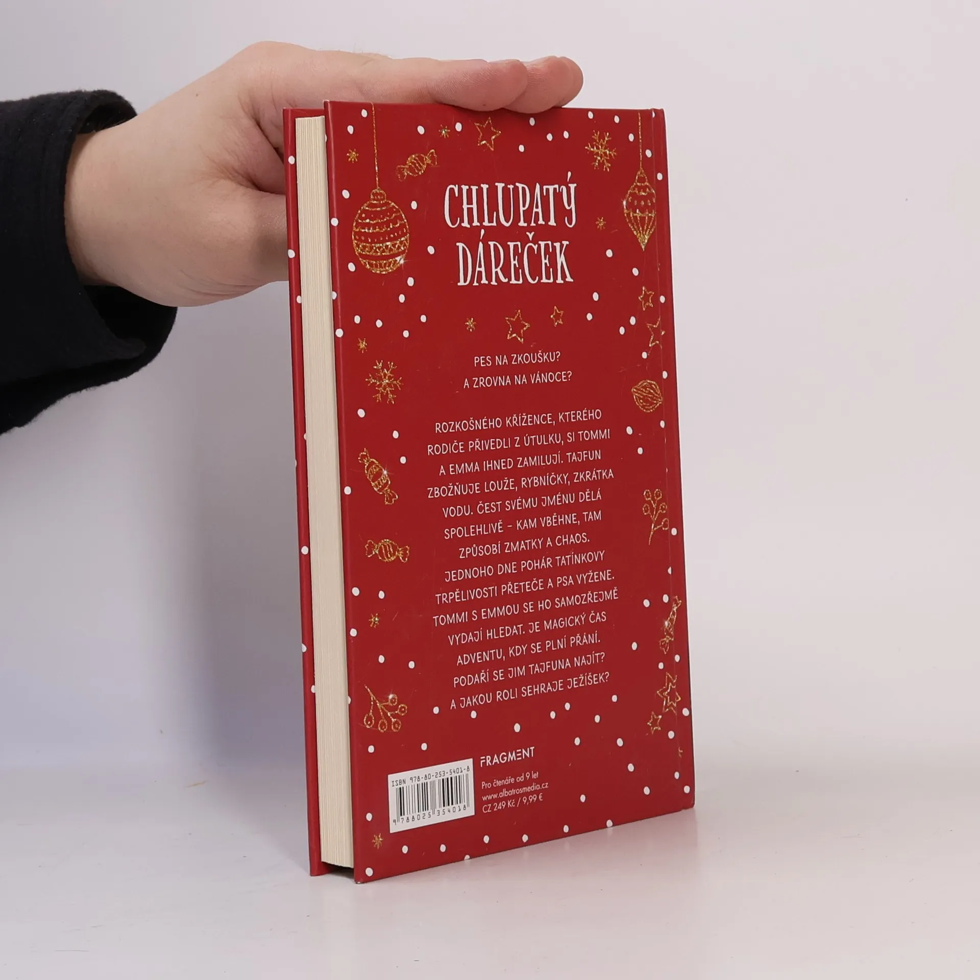 Pes na zkoušku? A zrovna na Vánoce? Rozkošného křížence, kterého rodiče přivedli z útulku, si Tommi a Emma ihned zamilují. Tajfun zbožňuje louže, rybníčky, zkrátka vodu. Čest svému jménu dělá spolehlivě – kam vběhne, tam způsobí zmatky a chaos. Jednoho dne pohár tatínkovy trpělivosti přeteče a psa vyžene. Tommi s Emmou se ho samozřejmě vydají hledat. Je magický čas adventu, kdy se plní přání. Podaří se jim Tajfuna najít? A jakou roli sehraje Ježíšek?