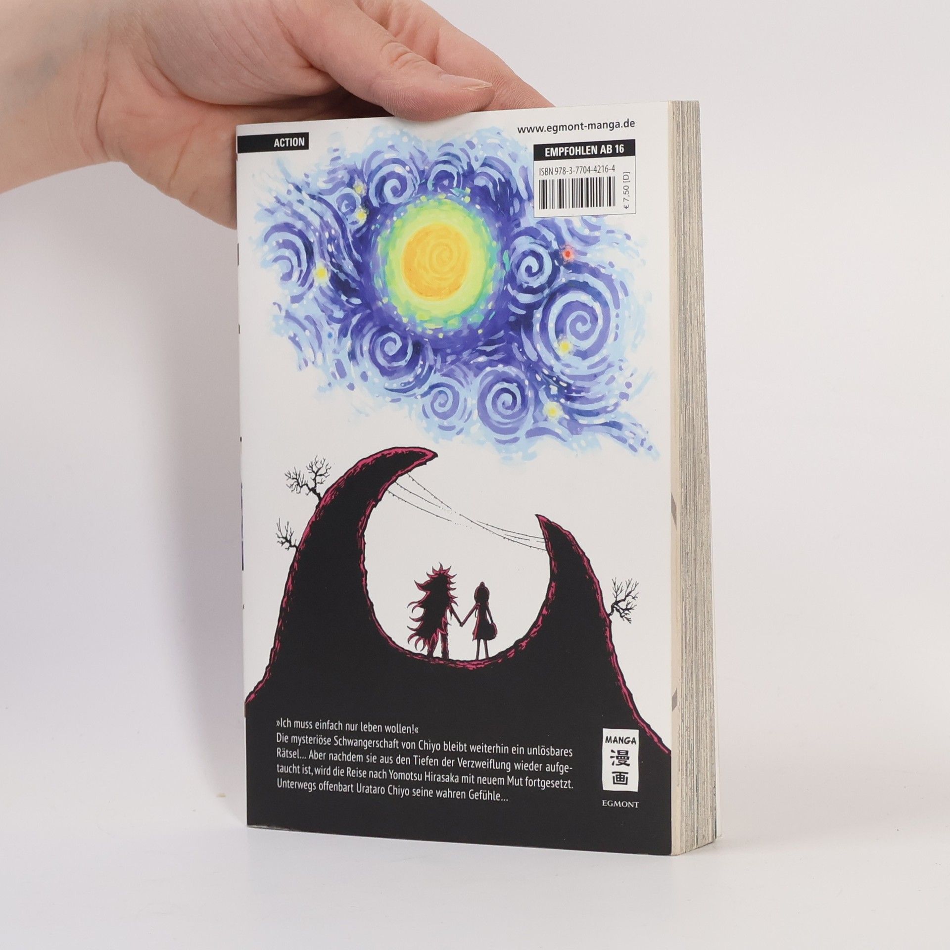 „Ich muss einfach nur leben wollen!“ Die mysteriöse Schwangerschaft von Chiyo bleibt weiterhin ein unlösbares Rätsel… Aber nachdem sie aus den Tiefen der Verzweiflung wieder aufgetaucht ist, wird die Reise nach Yomotsu Hirasaka mit neuem Mut fortgesetzt. Unterwegs offenbart Urataro Chiyo seine wahren Gefühle… Band 4 der Serie