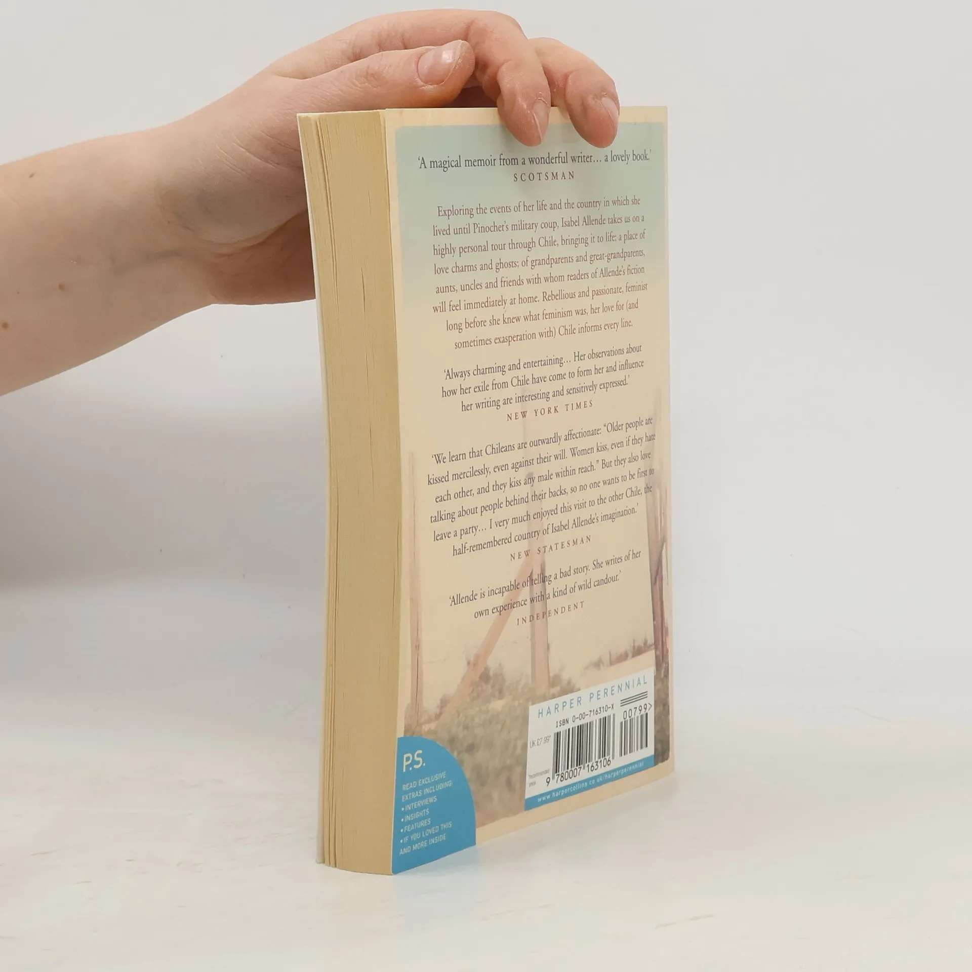 Isabel Allende evokes the magnificent landscapes of her country; a charming, idiosyncratic Chilean people with a violent history and an indomitable spirit, and the politics, religion, myth, and magic of her homeland that she carries with her even today. The book circles around two life-changing moments. The assassination of her uncle Salvador Allende Gossens on September 11, 1973, sent her into exile and transformed her into a literary writer. And the terrorist attacks of September 11, 2001, on her adopted homeland, the United States, brought forth an overdue acknowledgment that Allende had indeed left home. My Invented Country, mimicking the workings of memory itself, ranges back and forth across that distance between past and present lives. It speaks compellingly to immigrants and to all of us who try to retain a coherent inner life in a world full of contradictions.