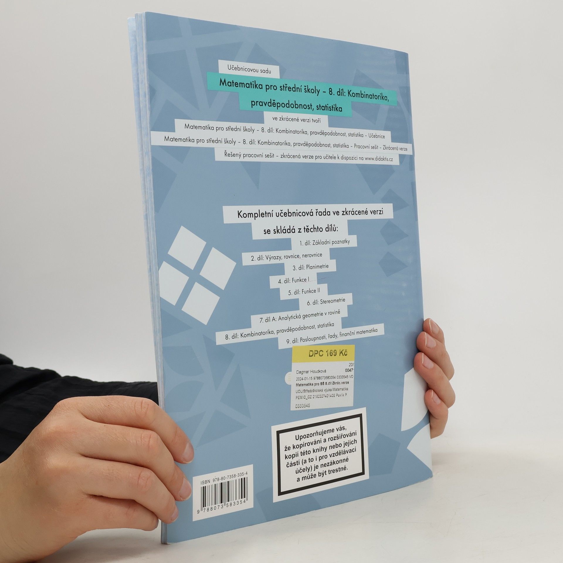 Skladem máme celkem knihy Matematika pro střední školy - kombinatorika, pravděpodobnost, statistika (8. díl, zkrácená verze, prac. sešit) (2020).