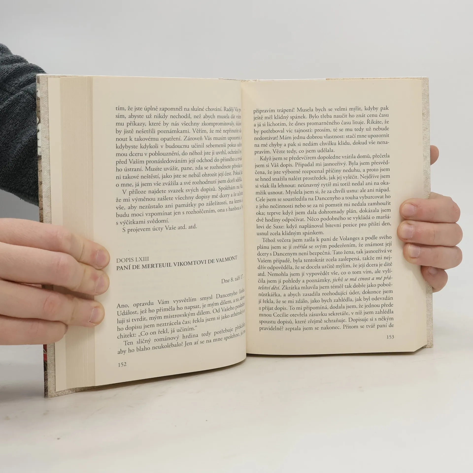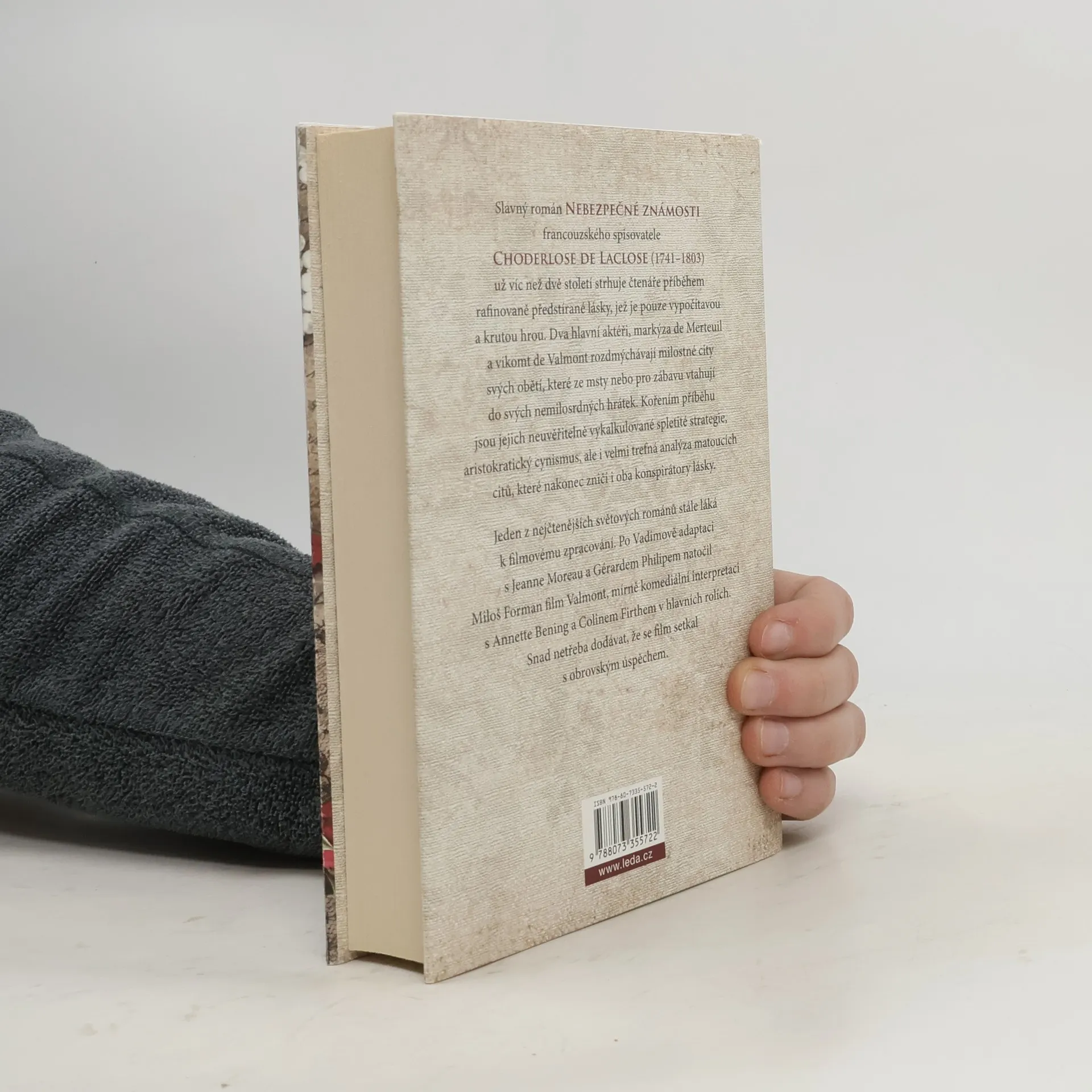 Slavný román Nebezpečné známosti francouzského spisovatele Choderlose de Laclose (1741–1803) už víc než dvě století strhuje čtenáře příběhem rafinovaně předstírané lásky, jež je pouze vypočítavou a krutou hrou. Dva hlavní aktéři, markýza de Merteuil a vikomt de Valmont rozdmýchávají milostné city svých obětí, které ze msty nebo pro zábavu vtahují do svých nemilosrdných hrátek. Kořením příběhu jsou jejich neuvěřitelně vykalkulované spletité strategie, aristokratický cynismus, ale i velmi trefná analýza matoucích citů, které nakonec zničí i oba konspirátory lásky. Jeden z nejčtenějších světových románů stále láká k filmovému zpracování. Po Vadimově adaptaci s Jeanne Moreau a Gérardem Philipem natočil Miloš Forman film Valmont, mírně komediální interpretaci s Annette Bening a Colinem Firthem v hlavních rolích. Snad netřeba dodávat, že se film setkal s obrovským úspěchem.