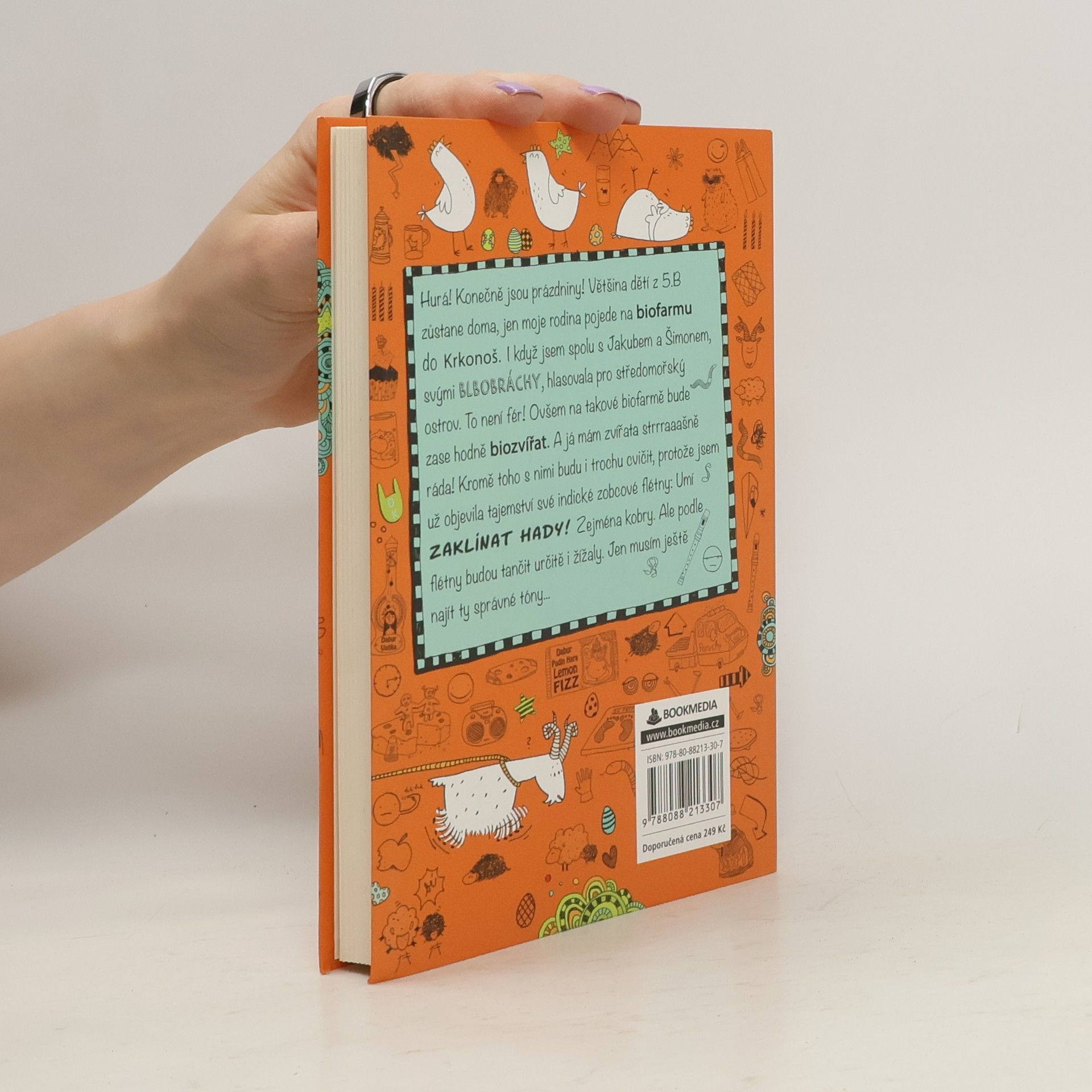 Hurá! Konečně prázdniny! Většina dětí z 5.B zůstane doma, jen moje rodina pojede na biofarmu do Krkonoš. I když jsem spolu s Jakubem a Šimonem, svými blbobráchy, hlasovala pro středomořský ostrov. To není fér! Ovšem na takové biofarmě bude zase hodně biozvířat. A já mám zvířata strrraaašně ráda! Kromě toho s nimi budu i trochu cvičit, protože jsem už objevila tajemství své indické zobcové flétny: Umí zaklínat hady! Zejména kobry. Ale podle flétny budou tančit určitě i žížaly. Jen musím ještě najít ty správné tóny... Třetí díl dobrodružství Lenky Patrmanové, která si píše deník plný legrace.
