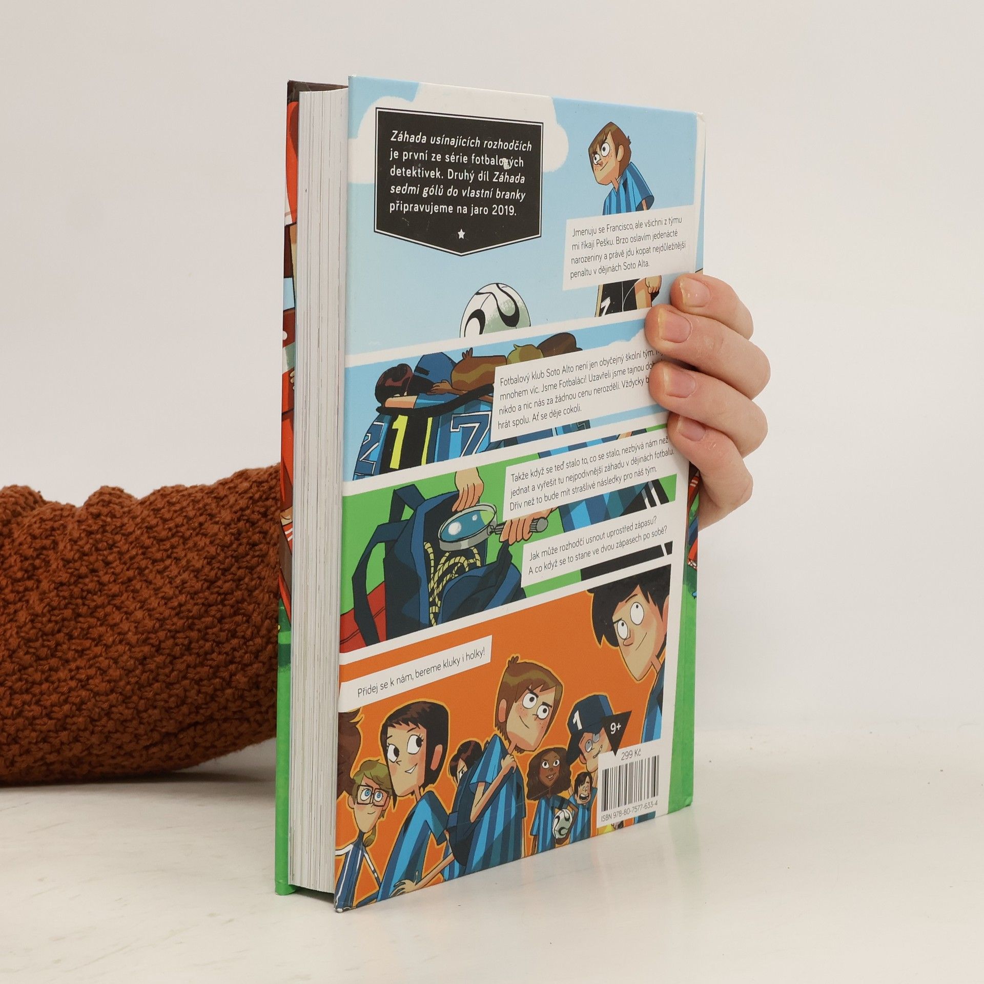 Jmenuju se Francisco, ale všichni z týmu mi říkají Pako. Nedávno mi bylo jedenáct a právě jdu kopat tu nejdůležitější penaltu v dějinách Soto Alta. Sedmý fotbalový tým Soto Alto není jen obyčejný školní oddíl. My jsme mnohem víc. My jsme Fotbaláci! Máme dohodu: nikdo a nic nás za žádnou cenu nerozdělí. Vždycky budeme hrát spolu. Ať se děje cokoli. Takže když se stalo to, co se stalo, neměli jsme jinou možnost než začít jednat: zapojit mozkové závity a přijít na kloub té nejpodivnější záhadě, jakou kdy kdo ve fotbale zažil. Jak může rozhodčí usnout uprostřed zápasu? Jak můžou usnout dva rozhodčí ve dvou zápasech? Záhada usínajících rozhodčích je první ze série fotbalových detektivek. Druhý díl Tajemství sedmi gólů do vlastní branky připravujeme na jaro 2019. Pro čtenáře od devíti let