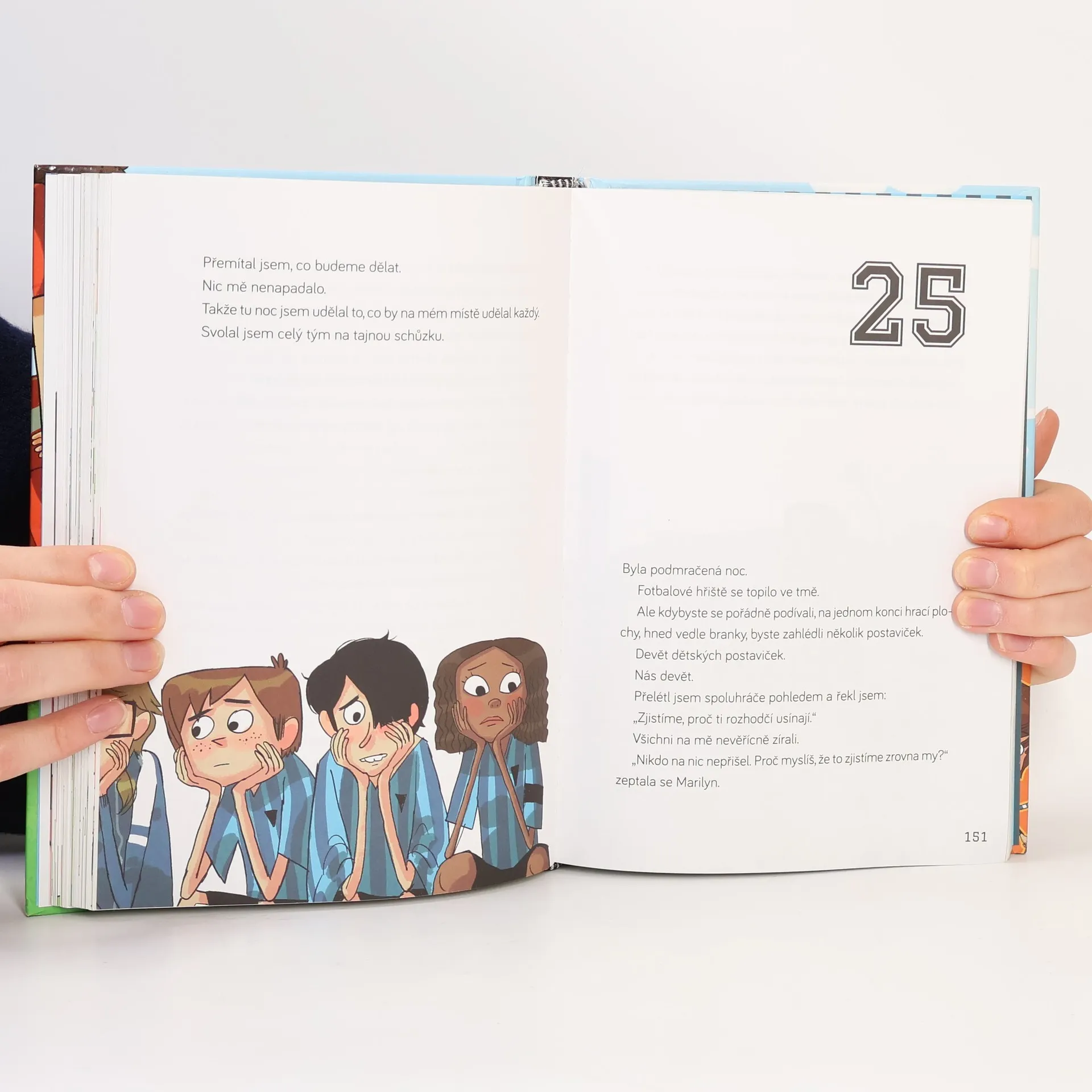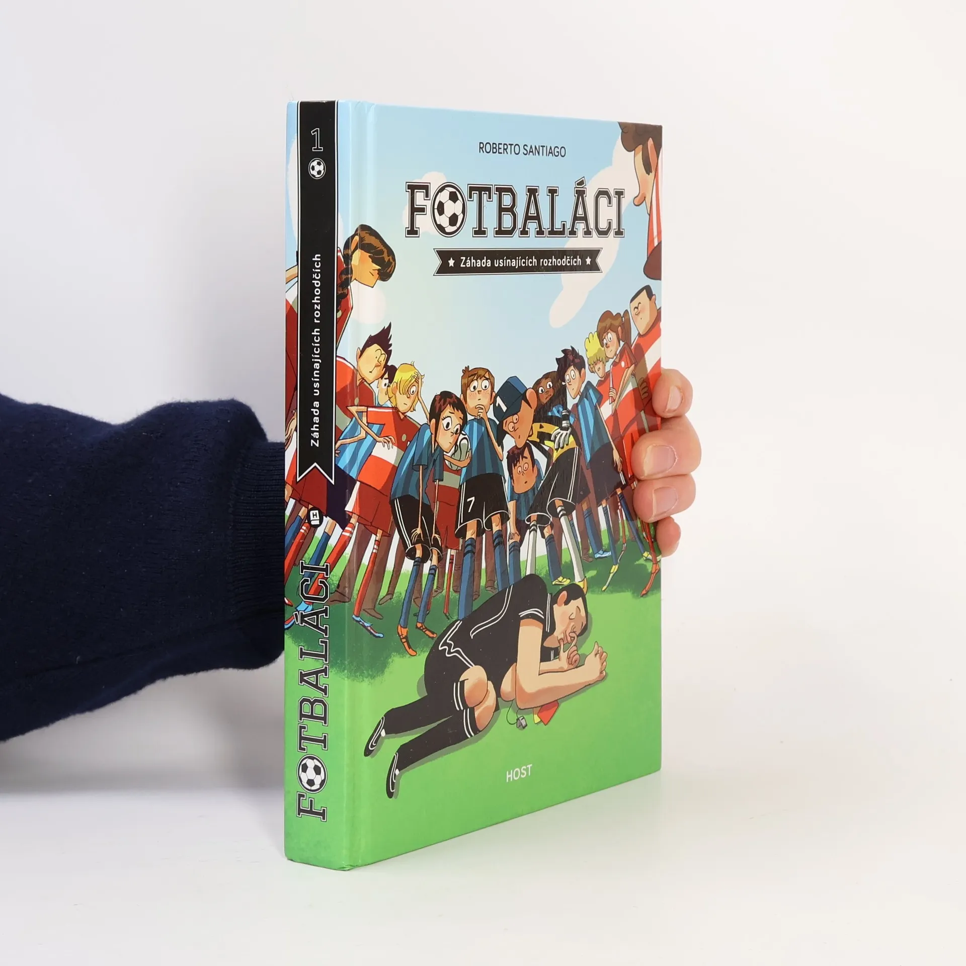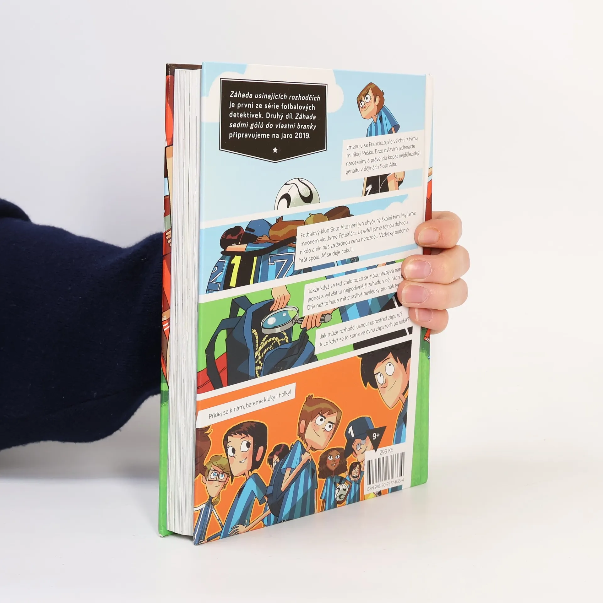 Jmenuju se Francisco, ale všichni z týmu mi říkají Pako. Nedávno mi bylo jedenáct a právě jdu kopat tu nejdůležitější penaltu v dějinách Soto Alta. Sedmý fotbalový tým Soto Alto není jen obyčejný školní oddíl. My jsme mnohem víc. My jsme Fotbaláci! Máme dohodu: nikdo a nic nás za žádnou cenu nerozdělí. Vždycky budeme hrát spolu. Ať se děje cokoli. Takže když se stalo to, co se stalo, neměli jsme jinou možnost než začít jednat: zapojit mozkové závity a přijít na kloub té nejpodivnější záhadě, jakou kdy kdo ve fotbale zažil. Jak může rozhodčí usnout uprostřed zápasu? Jak můžou usnout dva rozhodčí ve dvou zápasech? Záhada usínajících rozhodčích je první ze série fotbalových detektivek. Druhý díl Tajemství sedmi gólů do vlastní branky připravujeme na jaro 2019. Pro čtenáře od devíti let