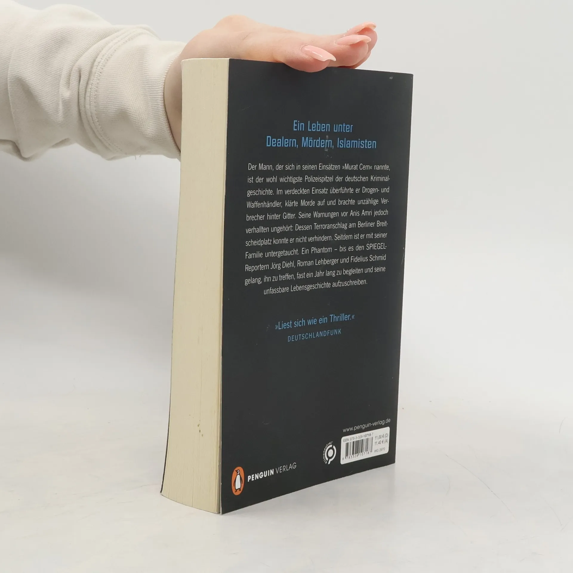 Ein Leben unter Dealern, Mördern, Islamisten: Deutschlands bester V-Mann packt aus Er nannte sich Murat Cem. Doch in den Akten heißt er nur VP01. Unter welchem Namen er heute lebt, ist ebenso geheim wie sein Aufenthaltsort. Der Mann, der lange Zeit der wohl beste und wichtigste V-Mann Deutschlands war, blieb stets ein Phantom. Bis es den SPIEGEL-Reportern Jörg Diehl, Roman Lehberger und Fidelius Schmid gelungen ist, ihn zu treffen, fast ein Jahr lang zu begleiten und seine unfassbare Lebensgeschichte aufzuschreiben. Im verdeckten Einsatz für die Polizei überführte Murat Cem nicht nur Drogen- und Waffenhändler. Er klärte Morde auf und wurde zur wichtigsten Polizei-Quelle in der deutschen Islamistenszene. Seine Warnungen vor Anis Amri jedoch verhallten ungehört: Dessen Terroranschlag am Berliner Breitscheidplatz konnte er nicht verhindern. Die Polizei wollte ihren Zuträger kaltstellen, doch jetzt packt Murat Cem aus. Die Welt soll endlich erfahren, was er wirklich gesehen hat.