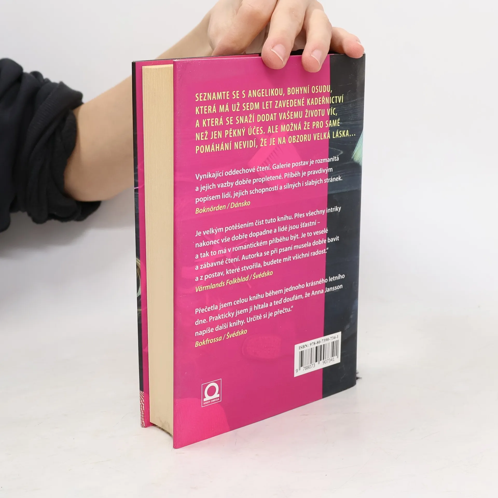 Tady, kousek od starého jižního náměstí, mám kadeřnictví. Pokud jste kolemjdoucí, prosím vstupte. Nabízím mátový a bezinkový čas ze své zahrádky, když budete muset chvíli čekat. Dívám se na vás do zrcadla a přemýšlím, jak nejlépe vám mohu pomoci. Mé nůžky jsou jako kouzelnická hůlka. Mé barvy vás dokážou změnit k nepoznání, pokud chcete. Když sedíte v křesle a já vás zakryju pláštěm, moje první otázka je vždy stejná: Co pro vás mohu udělat? A tím nemyslím jen vaše vlasy. Mám na mysli: Co mohu udělat pro váš život? K dispozici mám dvě otočné židle a nikdy není náhoda, že vedle vás sedí právě konkrétní člověk. Při čtení tohoto romantického románu se budete smát i plakat dojetím. Anna Jansson, jež je dobře známá díky sérii detektivek, se pustila na zcela neznámé pole románů pro ženy. Seznamte se s Angelikou, bohyní osudu, která má už sedm let zavedené kadeřnictví a která se snaží dodat vašemu životu víc, než je pěkný účes. Ale možná pro samé pomáhání nevidí, že je na obzoru velká láska...