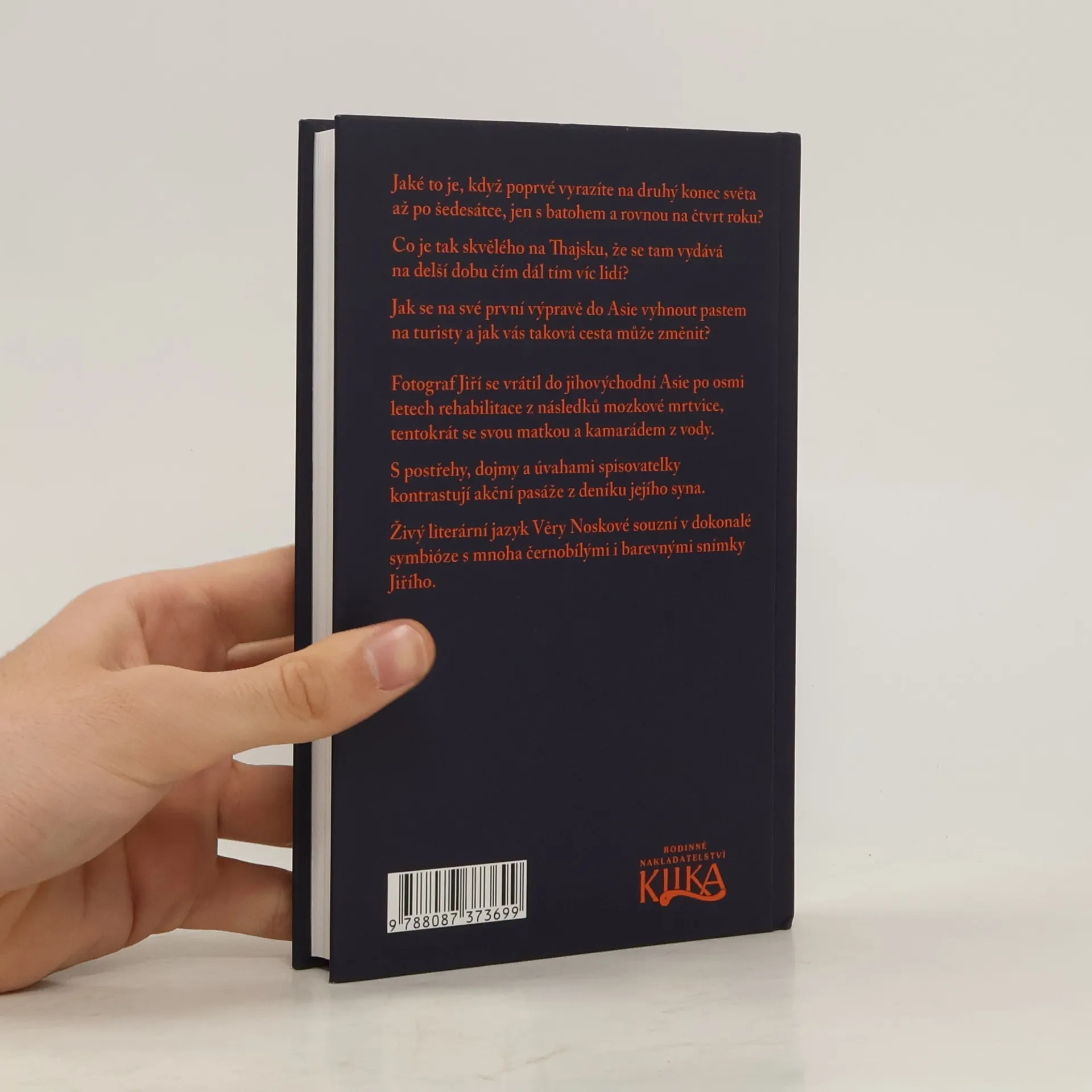 Tři cestovatelé poznávali po tři měsíce Thajce, Vietnamce a jejich země s bujnou bizarní přírodou, obdivovali výbuchy barev tropické flory, jejich národní parky a zbytky středověkých chrámů a svatyň, objevovali jihoasijská městečka, krajinu rýžových polí a džunglí porostlých hor, obří velkoměsta. Setkávali se s většinou milým a přátelským, ale vzácně i odpudivým chováním místních obyvatel, s jejich zvyky, chtěli pochopit jejich národní povahu, náboženství, preferované hodnoty i pověry. Nejmladší z cestovatelů, fotograf, grafik a nakladatel Jiří Nosek provázel svou matku, spisovatelku Věru Noskovou a kamaráda z vody Martina Pacovského po stopách své někdejší pouti, od níž ho dělilo nejen osm let, ale také překonávání následků mozkové mrtvice, z nichž se dostal silnou vůlí a neúnavným cvičením. Naplánoval a zajišťoval dlouhou a pestrou cestu, na jakou se ti dva vypravili po krotkých dovolených s cestovkami poprvé v životě. Náročné a dobrodružné putování změnilo všechny fyzicky, zároveň se cestovatelsky otrkali a poznali jiný svět. Kniha je psána živým literárním jazykem s prvky humoru. I když není bedekrem, obsahuje i cenné zkušenosti a rady. Je bohatá nejen textem, ale i barevnými a černobílými fotografiemi.