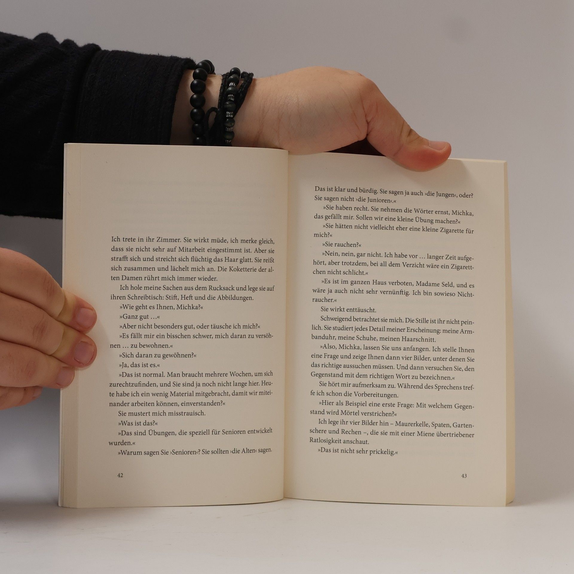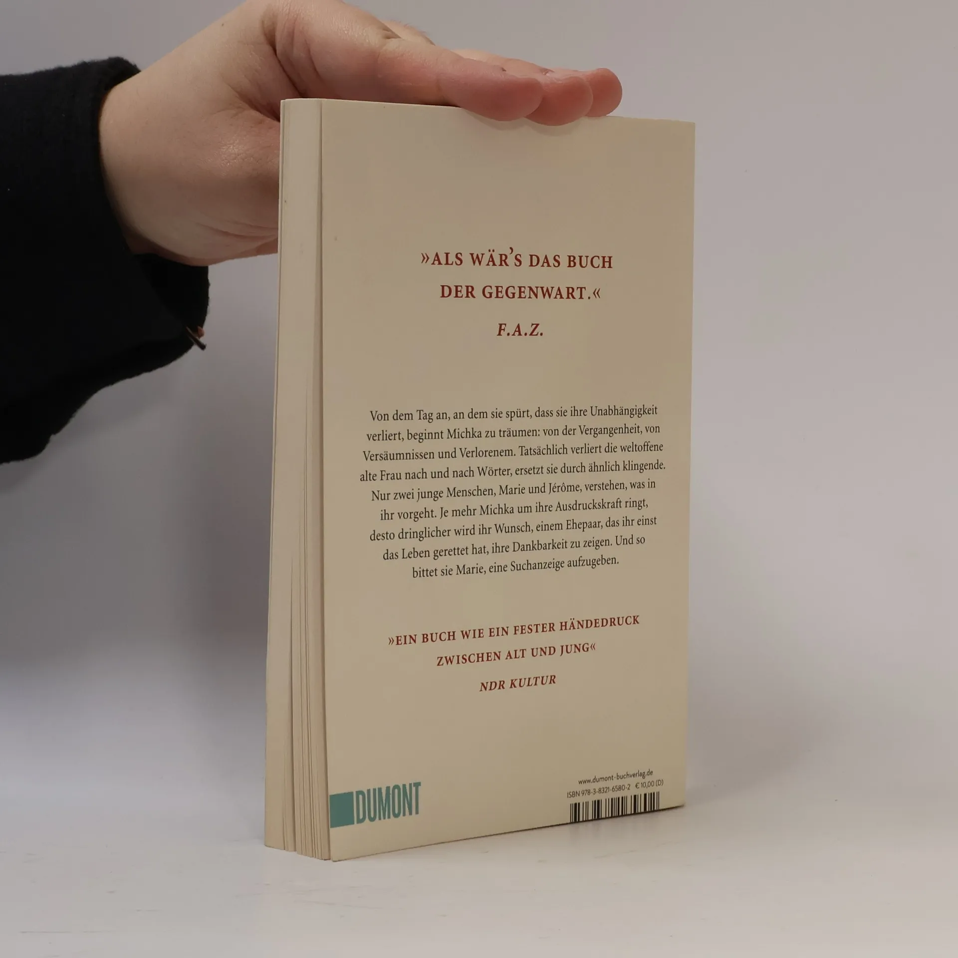 Michka, die stets ein unabhängiges Leben geführt hat, muss feststellen, dass sie nicht mehr allein leben kann. Geplagt von Albträumen glaubt sie ständig, wichtige Dinge zu verlieren. Tatsächlich verliert sie nach und nach Wörter, findet die richtigen nicht mehr und ersetzt sie durch ähnlich klingende. Die junge Marie, um die Michka sich oft gekümmert hat, bringt sie in einem Seniorenheim unter. Der alten Frau fällt es schwer, sich in der neuen Ordnung einzufinden. In hellen Momenten leidet sie unter dem Verlust ihrer Selbständigkeit. Doch was Michka am meisten beschäftigt, ist die bisher vergebliche Suche nach einem Ehepaar, dem sie ihr Leben zu verdanken hat. Daher gibt Marie erneut eine Suchanzeige auf, und Michka hofft, ihre tiefe Dankbarkeit endlich übermitteln zu können. Klarsichtig und scharfsinnig zeigt Delphine de Vigan, was uns am Ende bleibt: Zuneigung, Mitgefühl und Dankbarkeit.