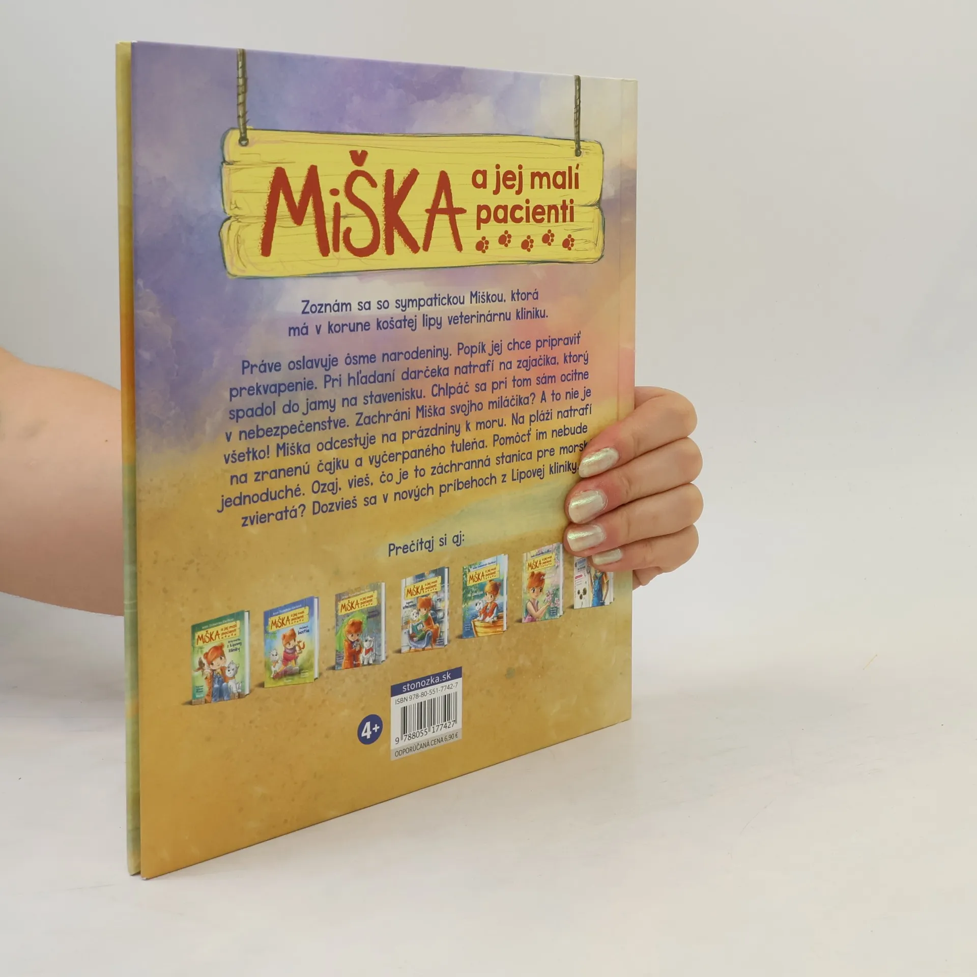 Zoznám sa so sympatickou Miškou, ktorá má v korune košatej lipy veterinárnu kliniku. Miška práve oslavuje ôsme narodeniny. Popík jej chce pripraviť výnimočné prekvapenie. Pri hľadaní darčeka natrafí na zajačika, ktorý spadol do jamy na stavenisku. Chlpáč sa pri tom sám ocitne v nebezpečenstve. Zachráni Miška svojho miláčika? A to stále nie je všetko! Miška odcestuje na prázdniny k moru. Na pláži natrafí na zranenú čajku a vyčerpaného tuleňa. Pomôcť im však nebude jednoduché. Ozaj, vieš, čo je to záchranná stanica pre morské zvieratá? Dozvieš sa v nových príbehoch z Lipovej kliniky.