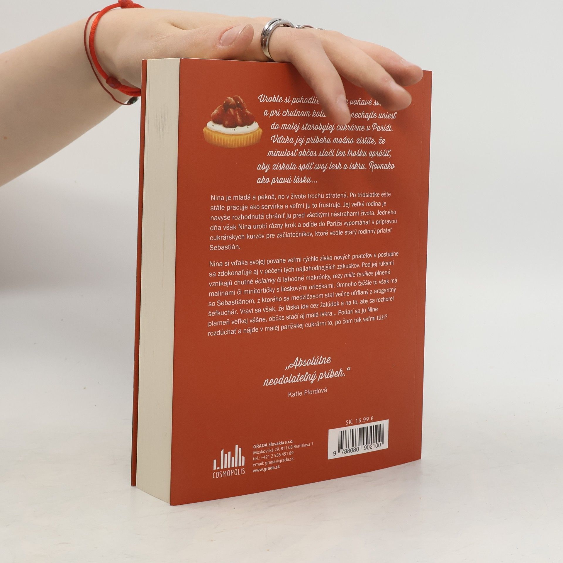 Objavte romantickú francúzsku cukráreň opradenú lahodnými vôňami a tou pravou láskouNina je mladá a pekná, no v živote trochu stratená.Po tridsiatke ešte stále pracuje ako servírka a veľmi ju to frustruje. Jej veľká rodina je navyše rozhodnutá chrániť ju pred všetkými nástrahami života. Jedného dňa však Nina urobí rázny krok a odíde do Paríža vypomáhať s prípravou cukrárskych kurzov pre začiatočníkov, ktoré vedie starý rodinný priateľ Sebastián.Nina si vďaka svojej povahe veľmi rýchlo získa nových priateľov a postupne sa zdokonaľuje aj v pečení tých najlahodnejších zákuskov.Pod jej rukami vznikajú chutné éclairky či lahodné makrónky, rezy mille-feuilles plnené malinami či minitortičky s lieskovými orieškami.Omnoho ťažšie to však má so Sebastiánom, z ktorého sa medzičasom stal večne ufrflaný a arogantný šéfkuchár. Vraví sa však, že láska ide cez žalúdok a na to, aby sa rozhorel plameň veľkej vášne, občas stačí aj malá iskra...Podarí sa ju Nine rozdúchať a nájde v malej parížskej cukrárni to, po čom tak...