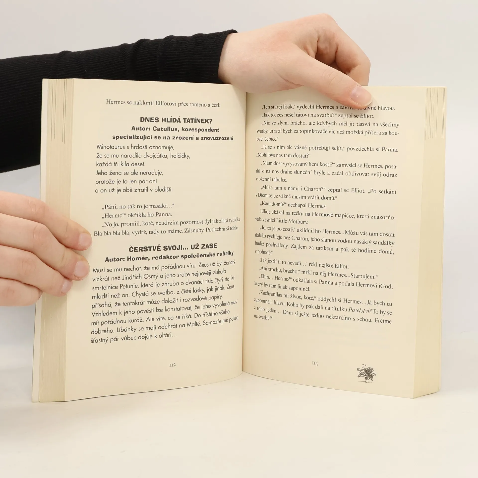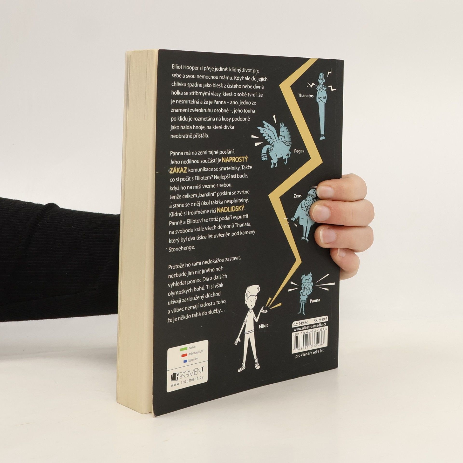 Olympané v současném světě internetu, mobilů, tabletů a komerce. Začátek bestsellerové série vedle které bledne i Percy Jackson. Elliot Hooper si přeje jediné: klidný život pro sebe a svou nemocnou mámu. Když ale do jejich chlívku spadne jako blesk z čistého nebe divná holka se stříbrnými vlasy, která o sobě tvrdí, že je nesmrtelná a že je Panna – ano, jedno ze znamení zvěrokruhu osobně –, jeho touha po klidu je rozmetána na kusy podobně jako halda hnoje, na které dívka neobratně přistála. Panna má na zemi tajné poslání. Jeho nedílnou součástí je NAPROSTÝ ZÁKAZ komunikace se smrtelníky. Takže co si počít s Elliotem? Nejlepší asi bude, když ho na misi vezme s sebou. Jenže celkem„banální“ poslání se zvrtne a stane se z něj úkol takřka nesplnitelný. Klidně si troufněme říci NADLIDSKÝ. Panně a Elliotovi se totiž podaří vypustit na svobodu krále všech démonů Thanata, který byl dva tisíce let uvězněn pod kameny Stonehenge. Protože ho sami nedokážou zastavit, nezbude jim nic jiného než vyhledat pomoc Dia a dalších olympských bohů. Ti si však užívají zasloužený důchod a vůbec nemají radost z toho, že je někdo tahá do služby…